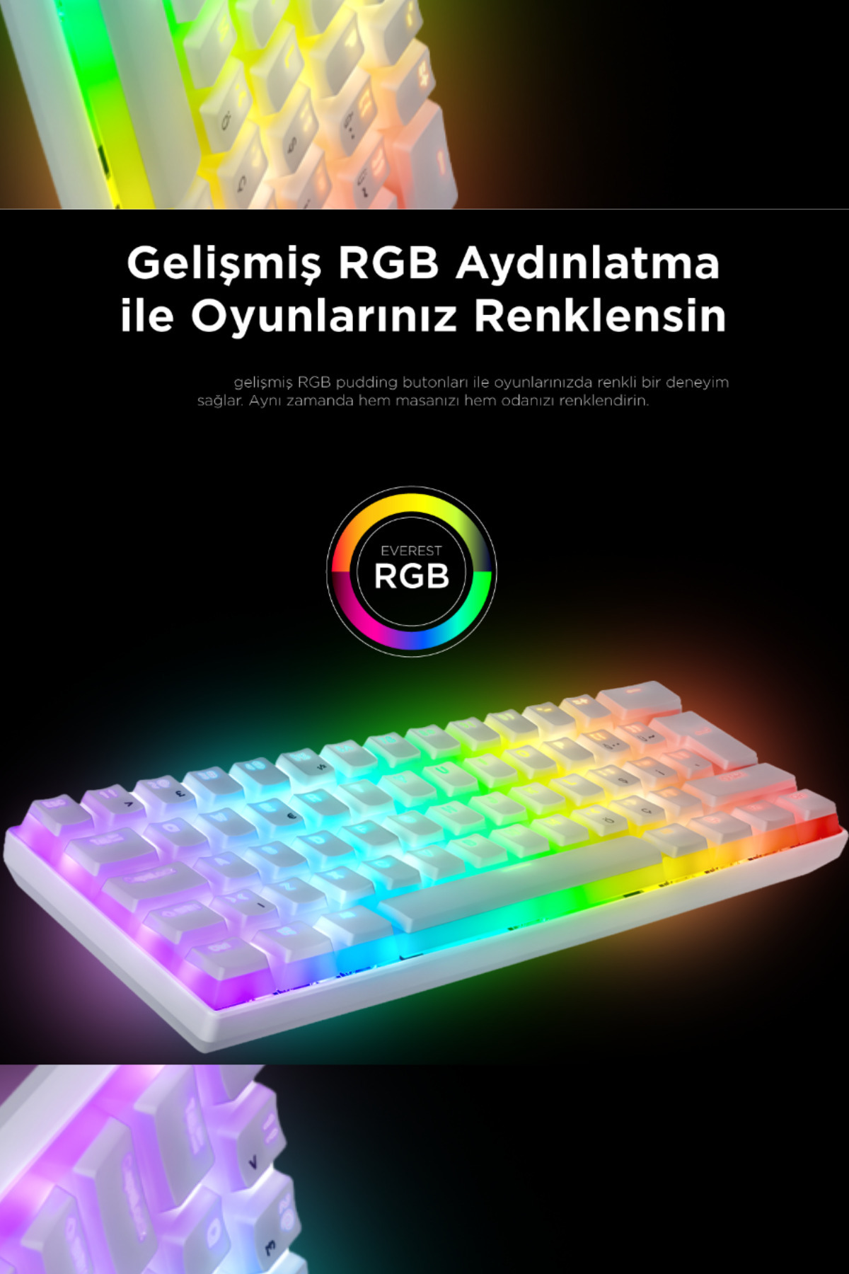 RGB Mekanik Oyuncu Klavyesi - 61 Tuş, Red Switch, Anti-Ghosting, Beyaz RGB Mekanik Oyuncu Klavyesi - 61 Tuş, Red Switch, Anti-Ghosting, Beyaz G508 تک سایز