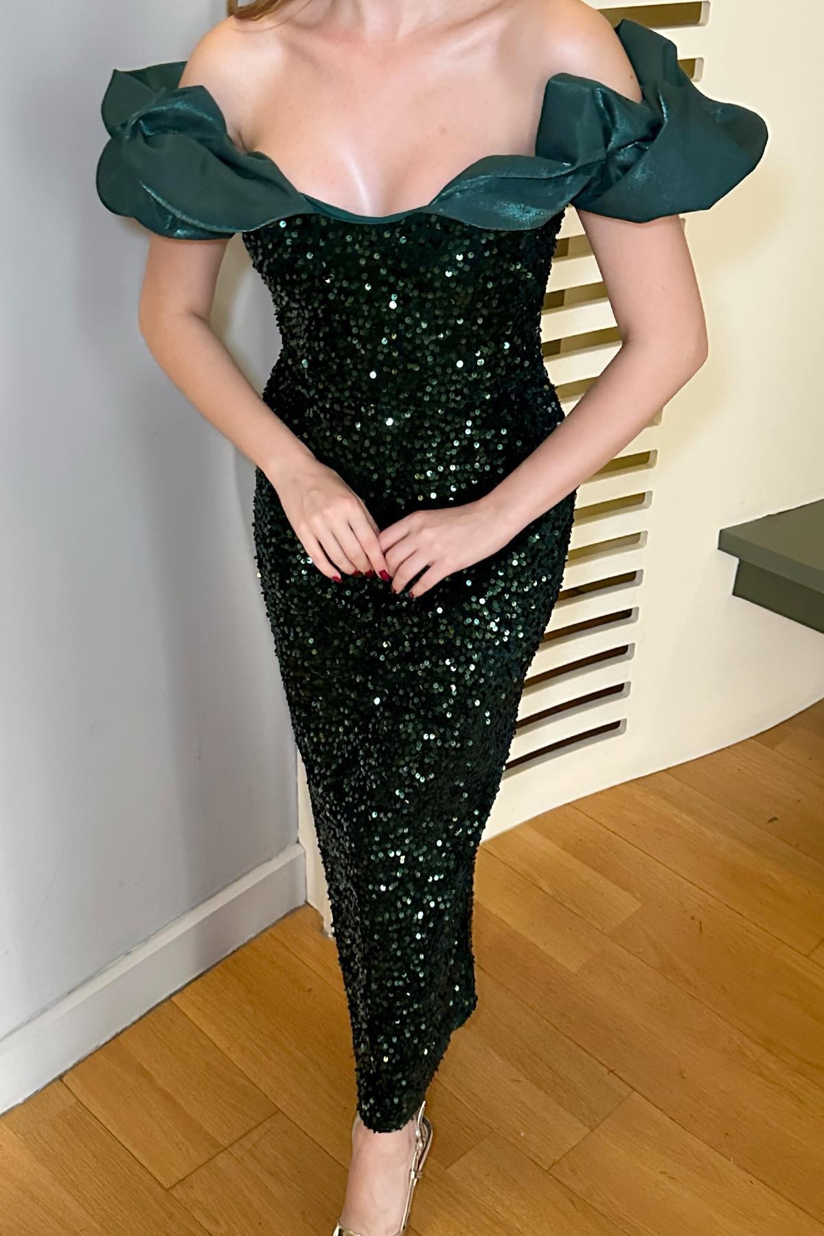 Pulpayetli Kolsuz Elbise Pulpayetli Kolsuz Elbise 8440 XL