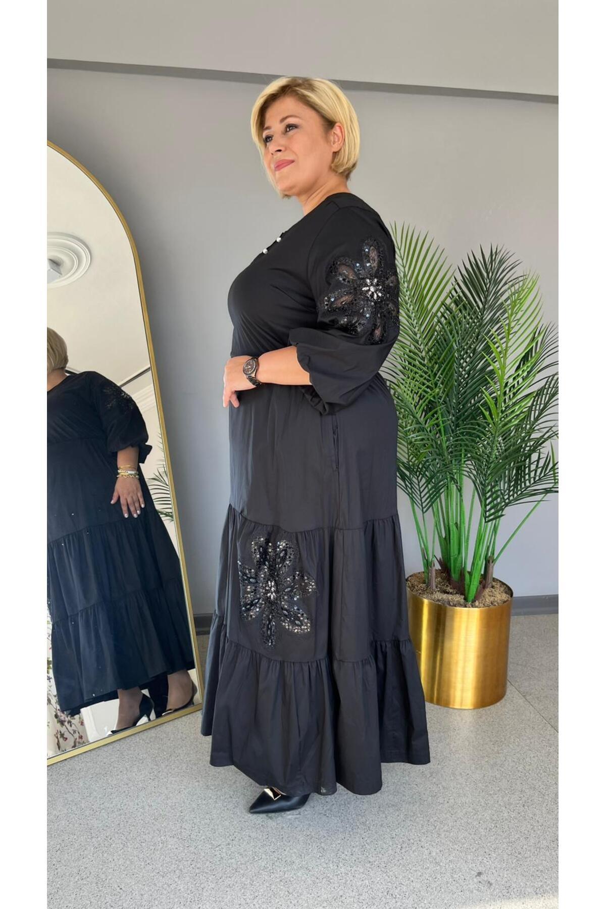 Büyük Beden Kol İşlemeli Elbise Büyük Beden Kol İşlemeli Elbise 25YELB-00162 2