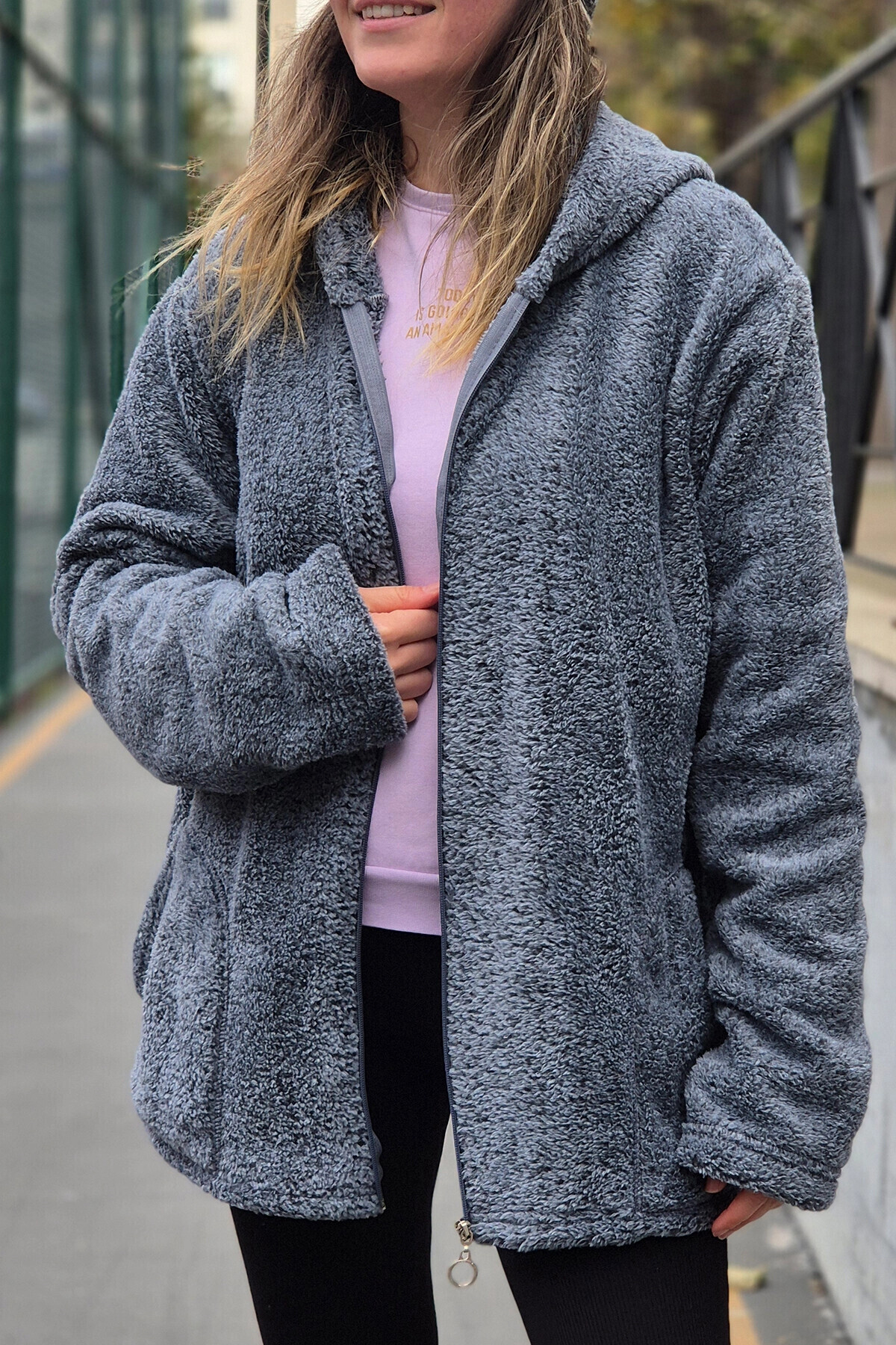 Kadın Füme Welsoft esnek kumaş Peluş Yumoş Önü Fermuarlı Kapüşonlu Ceket HZL23W-DSB110081 Kadın Füme Welsoft esnek kumaş Peluş Yumoş Önü Fermuarlı Kapüşonlu Ceket HZL23W-DSB110081 TYC29A81AE06D11291CB12100 42