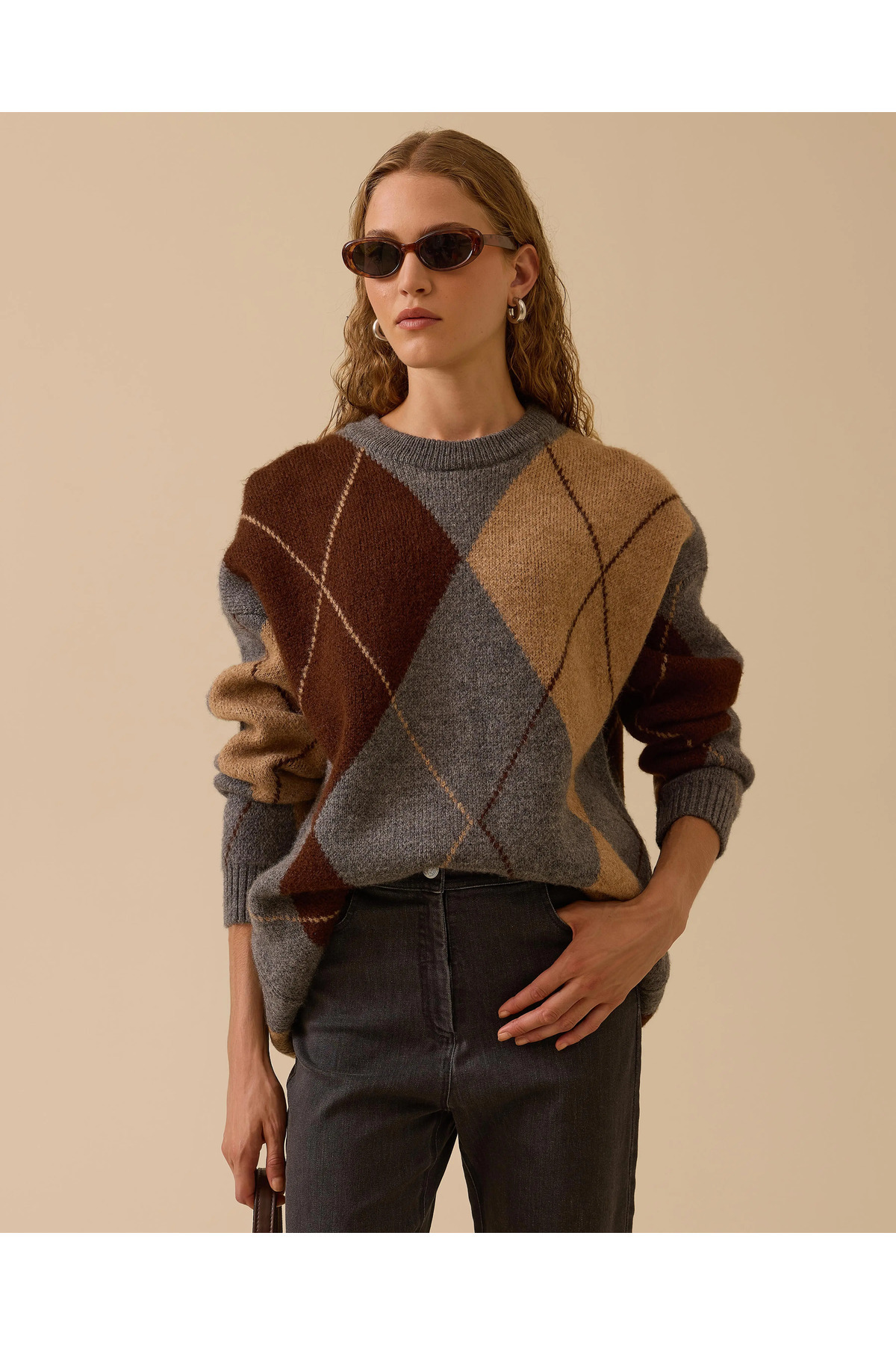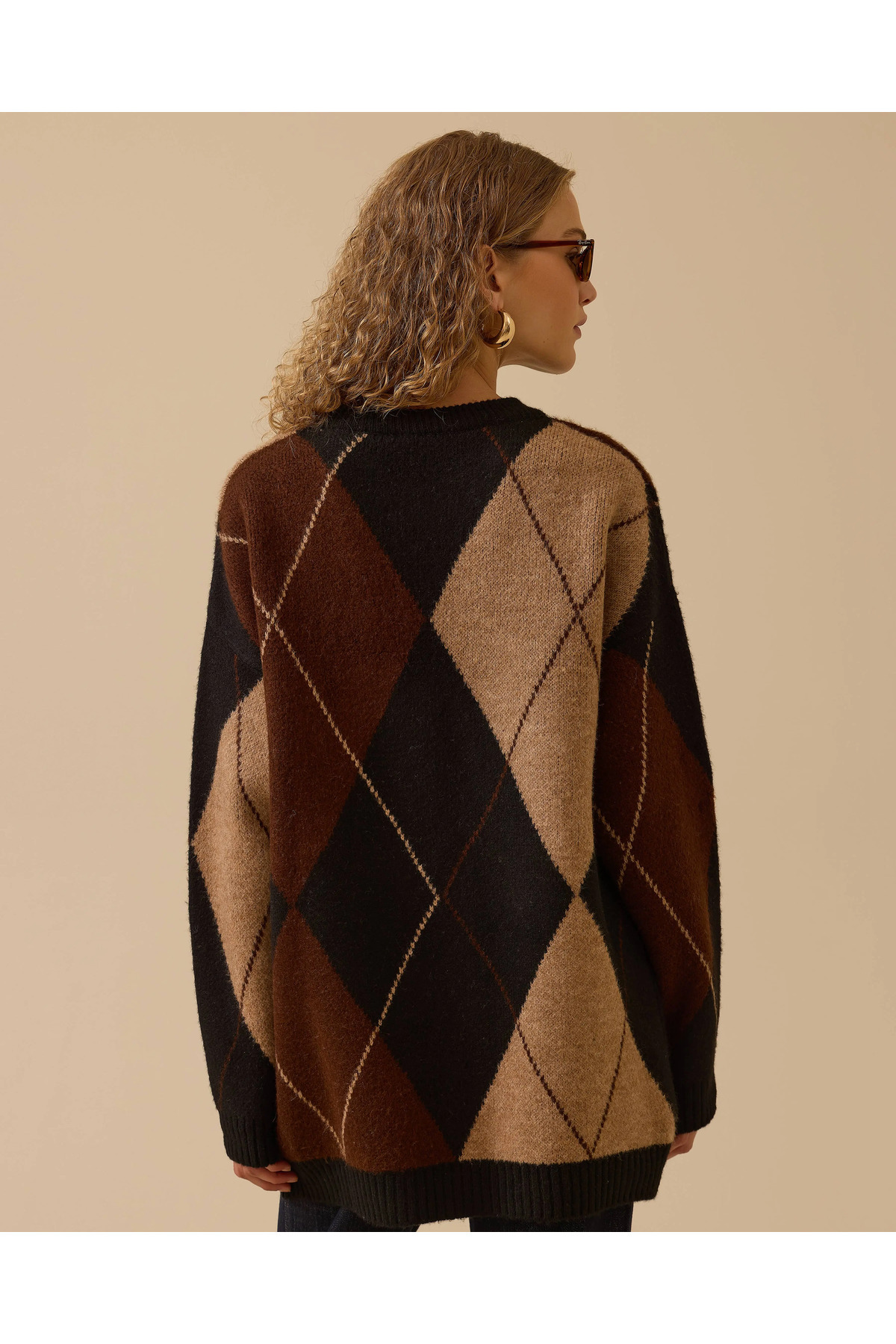 Geometrik Desenli Oversize Kazak Geometrik Desenli Oversize Kazak 10002521710011 L