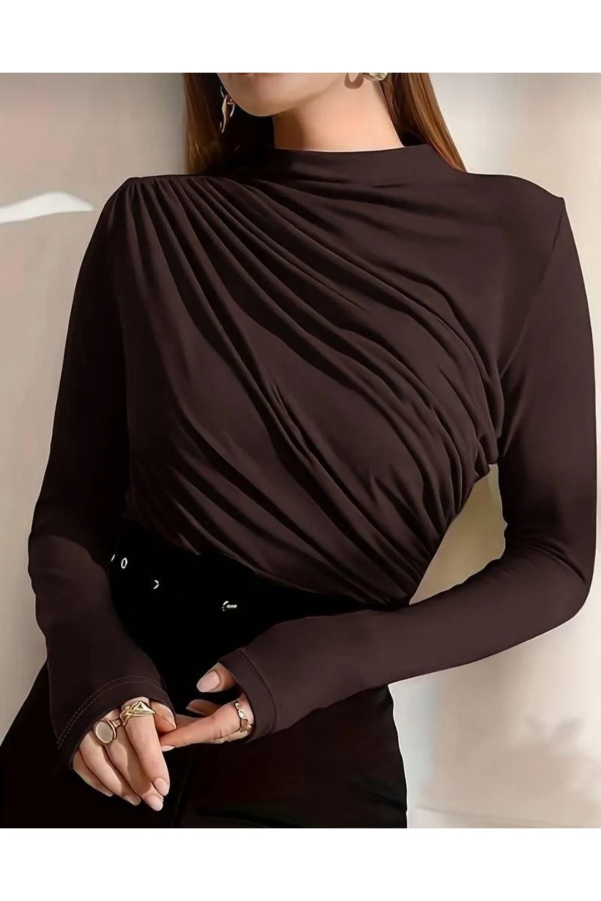 KADIN DİK YAKA BEL VE OMUZ BÜZGÜLÜ BLUZ KADIN DİK YAKA BEL VE OMUZ BÜZGÜLÜ BLUZ 2355443309 2XL