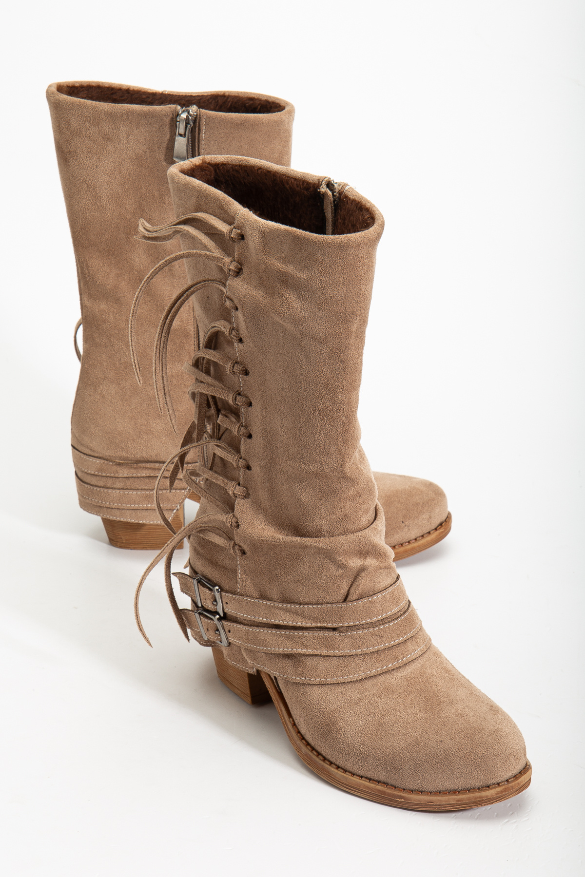 Kadın Topuklu Pantolon Çizme Orel Vizon Süet Kadın Topuklu Pantolon Çizme Orel Vizon Süet 350273 40