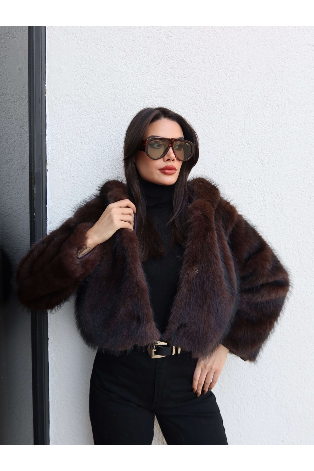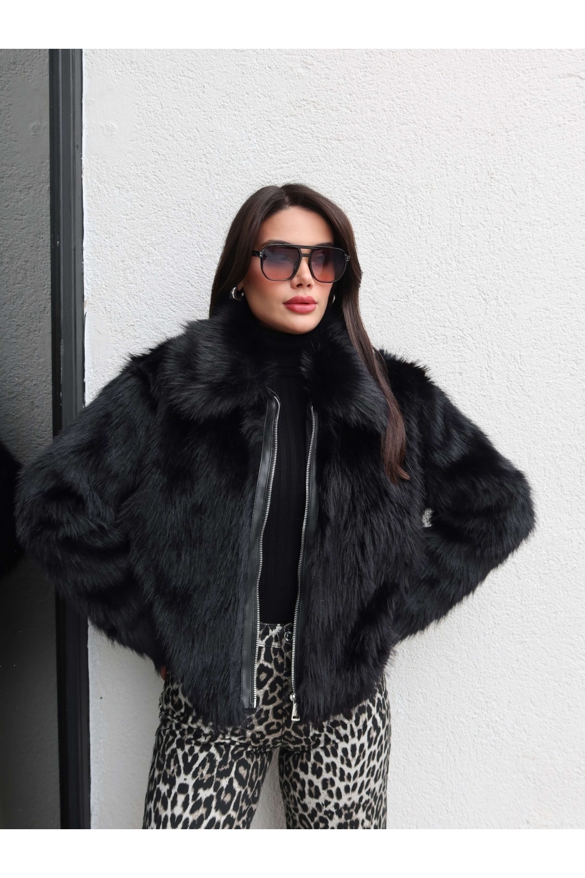 İthal Şal Yaka Jakarlı Suni Kürk İthal Şal Yaka Jakarlı Suni Kürk EH-5969 L