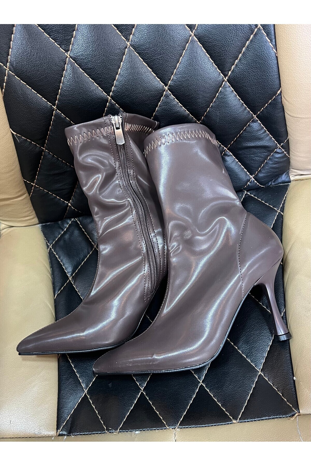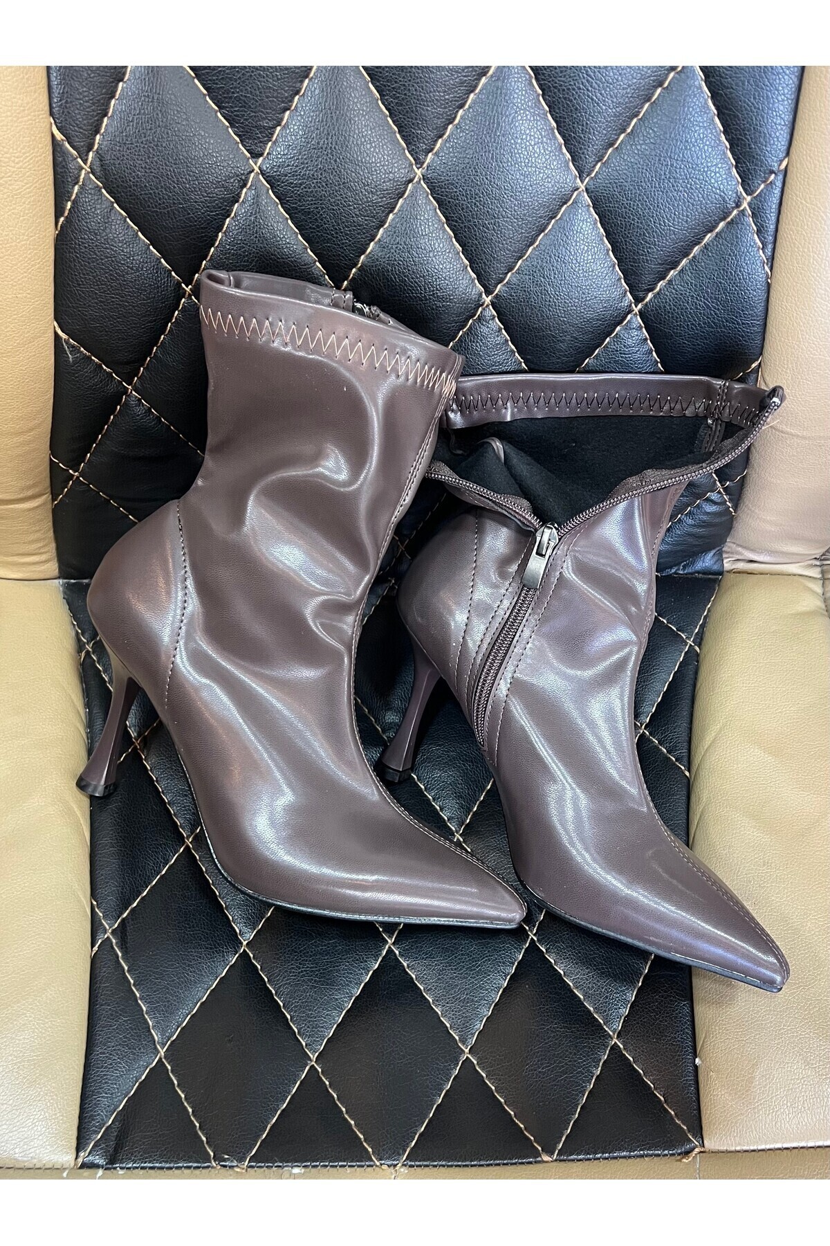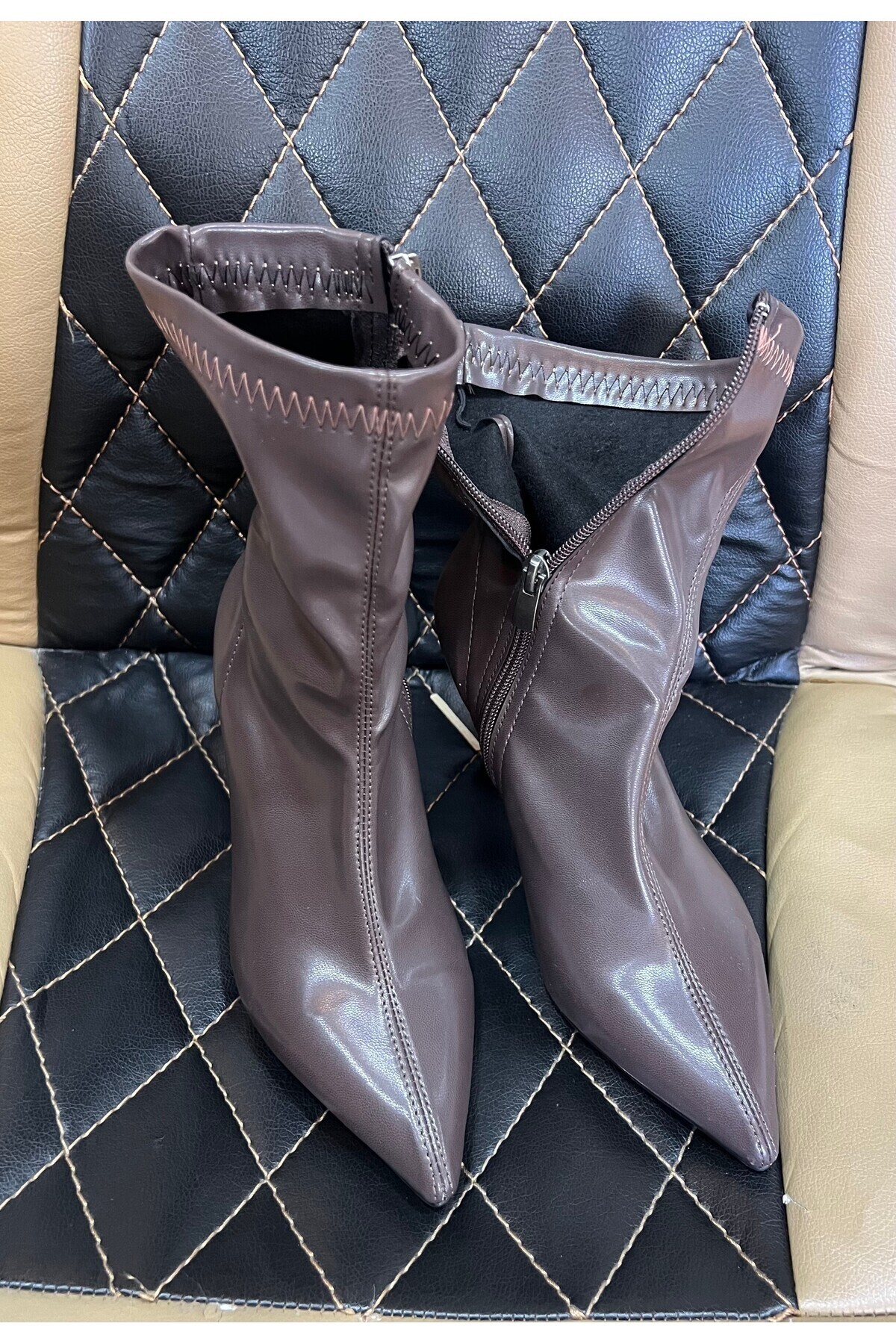 Kadın Marya Kahverengi Streç Cilt Yandan Fermuar Sivri Burun İnce Topuklu Bot Kadın Marya Kahverengi Streç Cilt Yandan Fermuar Sivri Burun İnce Topuklu Bot DB-761S 40