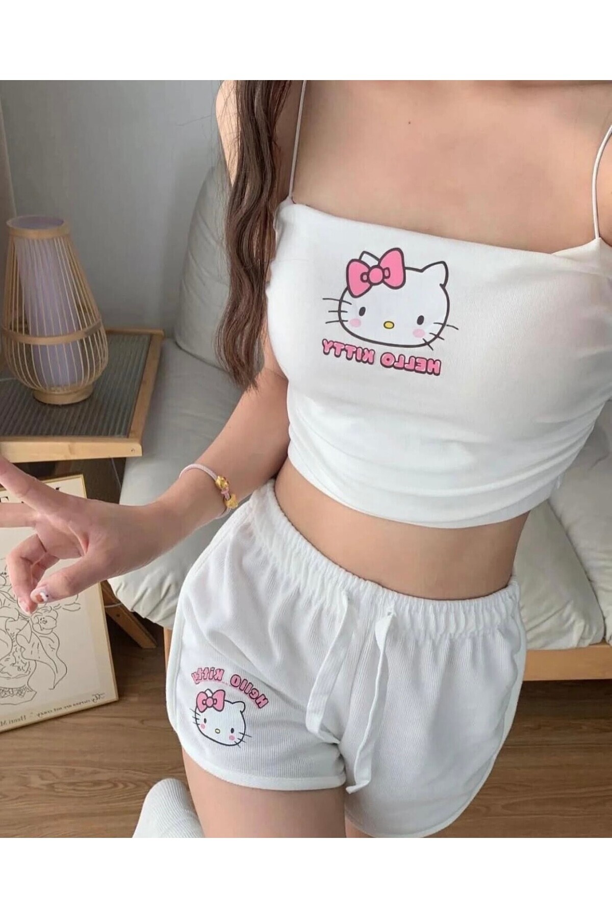 Kadın Ekose Kurdele Baskılı Askılı Bluz - Ekose Şort Alt-Üst Takım Kadın Ekose Kurdele Baskılı Askılı Bluz - Ekose Şort Alt-Üst Takım leoparaskılıcrop_şort XL