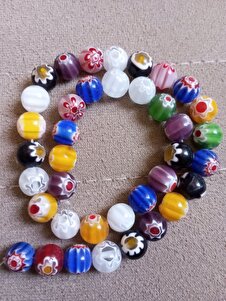 10mm Karışık Renkli Yuvarlak Çiçek Desenli Murano Cam Boncuk 35 Adet 10mm Karışık Renkli Yuvarlak Çiçek Desenli Murano Cam Boncuk 35 Adet SN10MM77 تک سایز