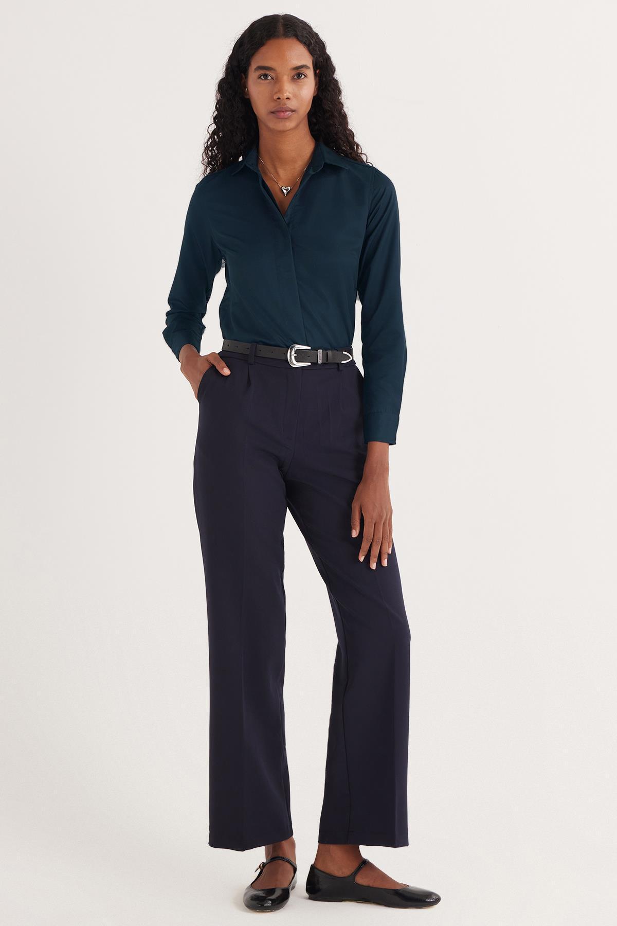 Kadın Slim Fit Dar Kesim Vucüda Oturan Uzun Kollu Gizli Düğme Detaylı Lacivert Basic Gömlek Kadın Slim Fit Dar Kesim Vucüda Oturan Uzun Kollu Gizli Düğme Detaylı Lacivert Basic Gömlek BYGM2549 2XL