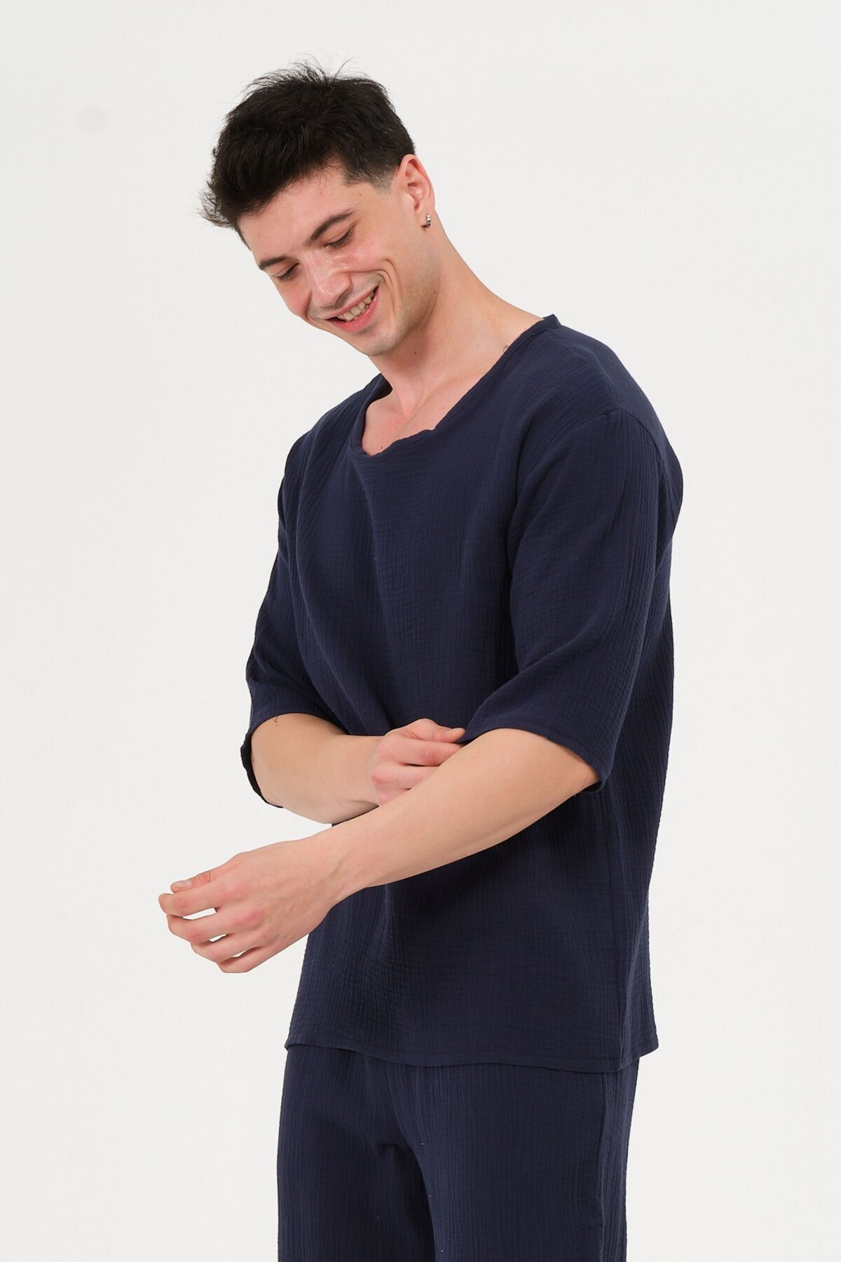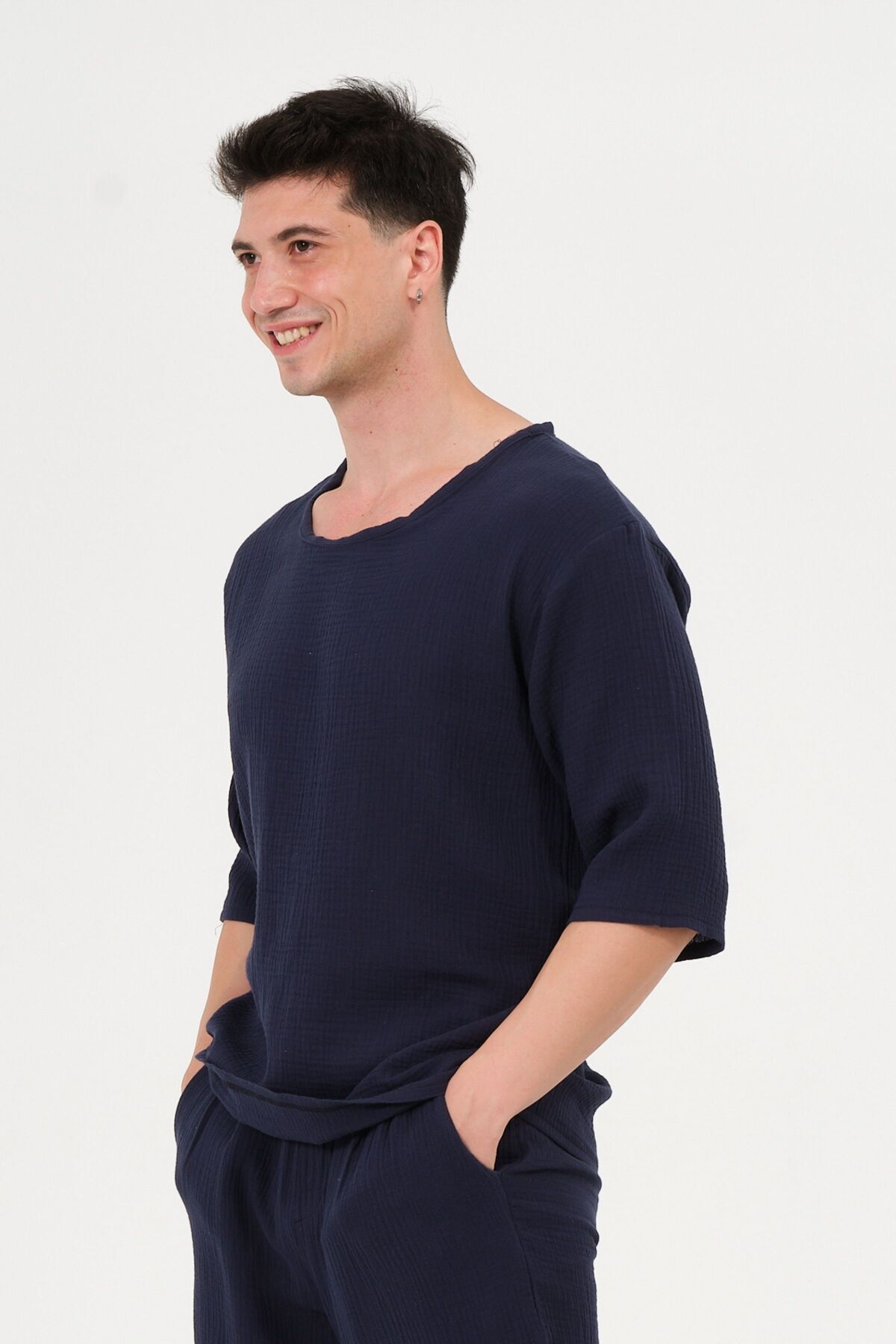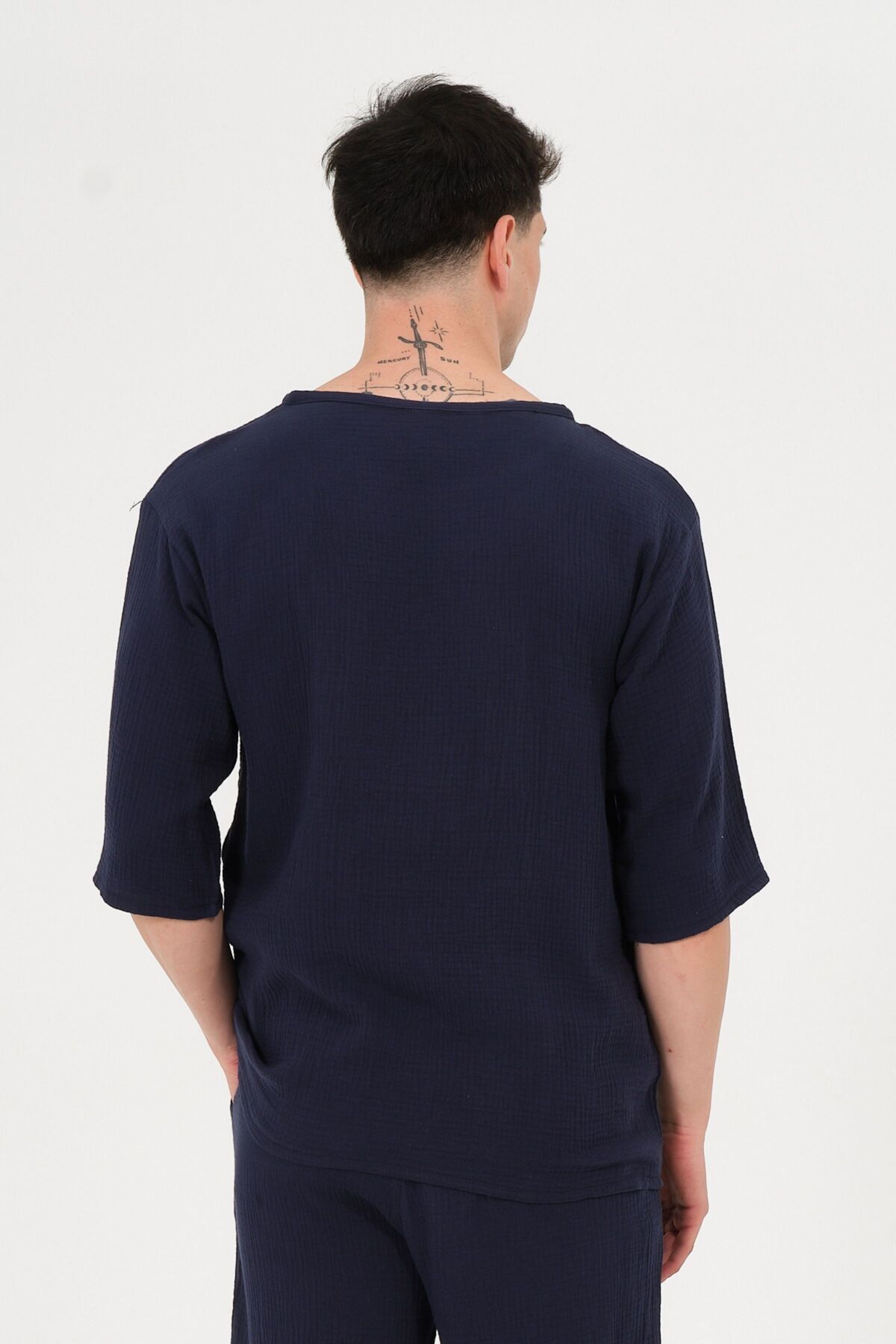 %100 Pamuk Basic Bisiklet Yaka Oversize Lacivert Müslin Tişört %100 Pamuk Basic Bisiklet Yaka Oversize Lacivert Müslin Tişört t2-k4 7XL