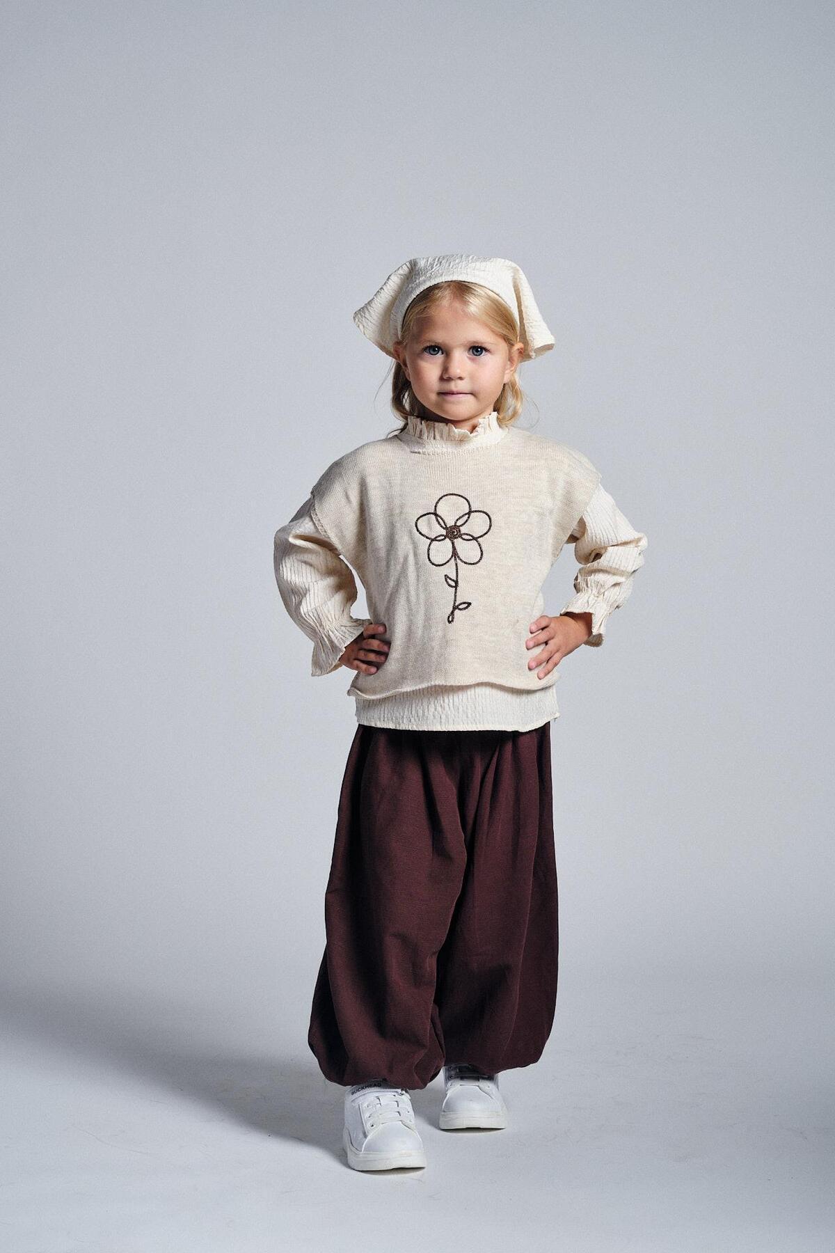 Nakışlı Triko Kazak Pant. Bandanalı 4'lü Tak. Nakışlı Triko Kazak Pant. Bandanalı 4'lü Tak. PM2609 9-10 Yaş