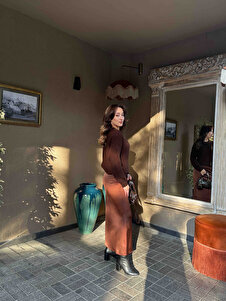 Kadın Acı Kahve Yüksek Bel Basic Saten Etek Vs01031 Kadın Acı Kahve Yüksek Bel Basic Saten Etek Vs01031 VS01031 L