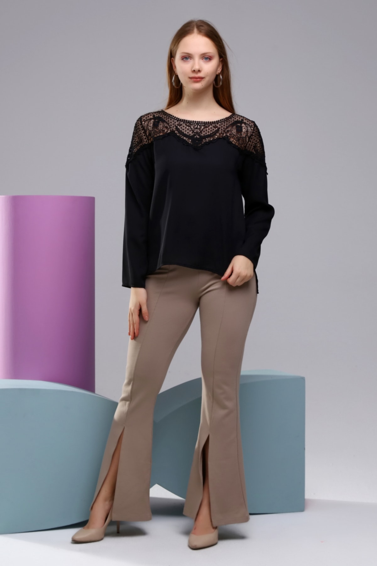 Kolları ve Yakası Dantel V Yaka Viskon Bluz - 72320 Kolları ve Yakası Dantel V Yaka Viskon Bluz - 72320 TX4136711C6715 2XL