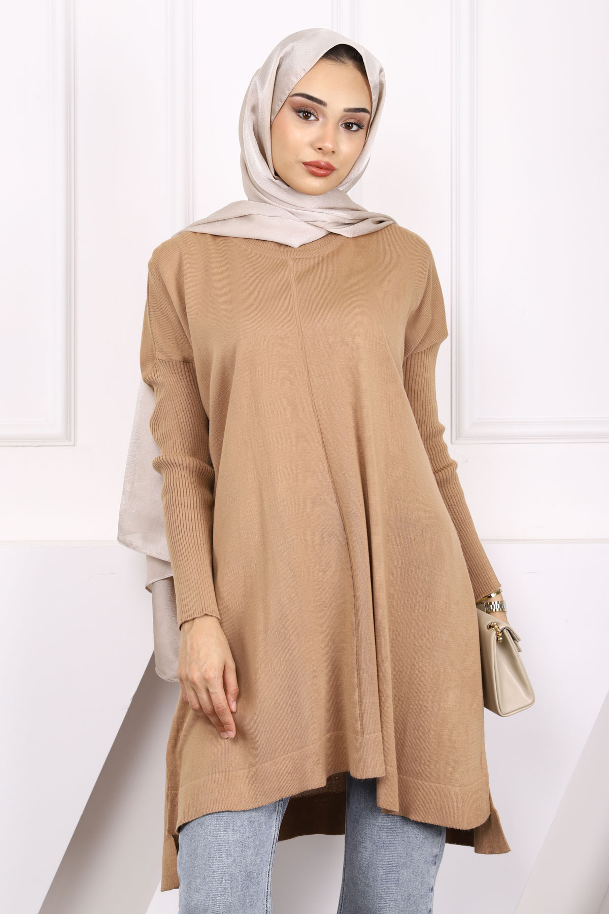 Kahverengi Kol Düğmeli Soğuk İplik Triko Tunik Kahverengi Kol Düğmeli Soğuk İplik Triko Tunik IMJ007456 Standart