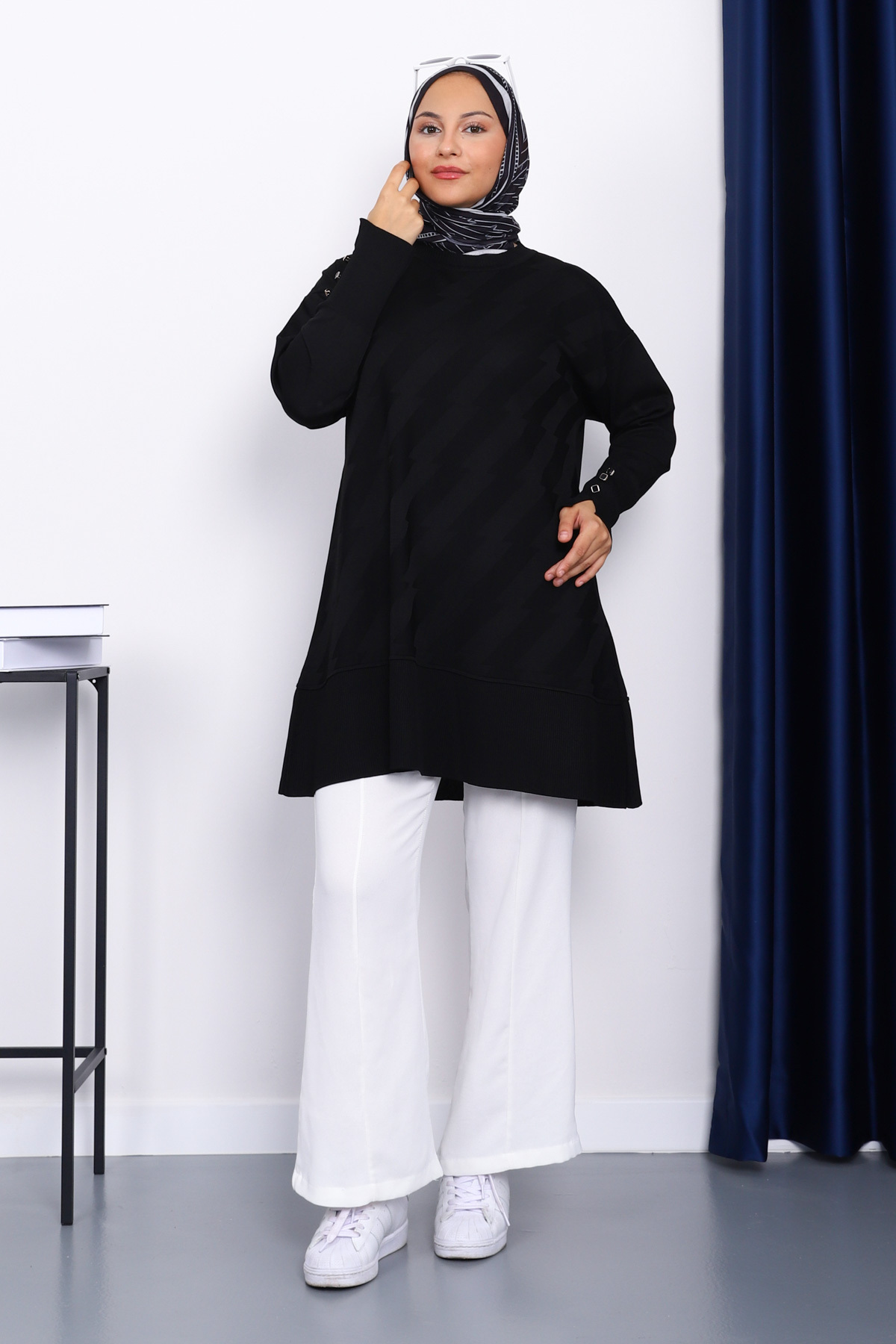 Siyah Kol Düğmeli Soğuk İplik Triko Tunik Siyah Kol Düğmeli Soğuk İplik Triko Tunik IMJ007456 Standart