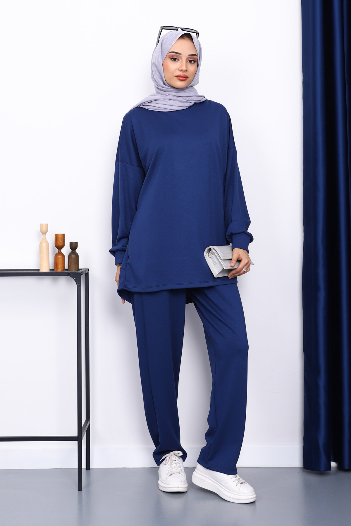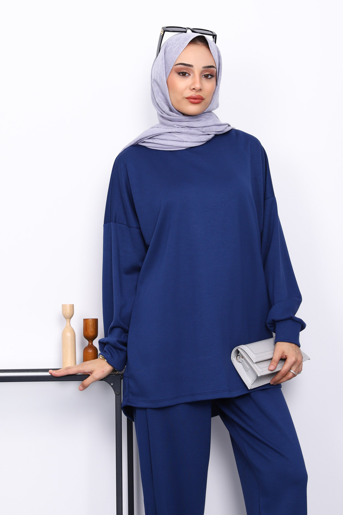 Lacivert Bisiklet Yaka Tunik Pantolonlu Takım Lacivert Bisiklet Yaka Tunik Pantolonlu Takım IMJ007595 تک سایز