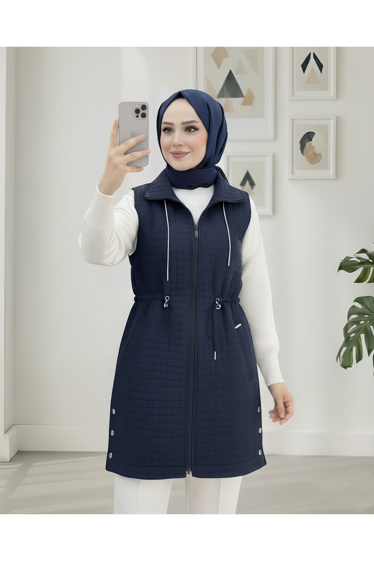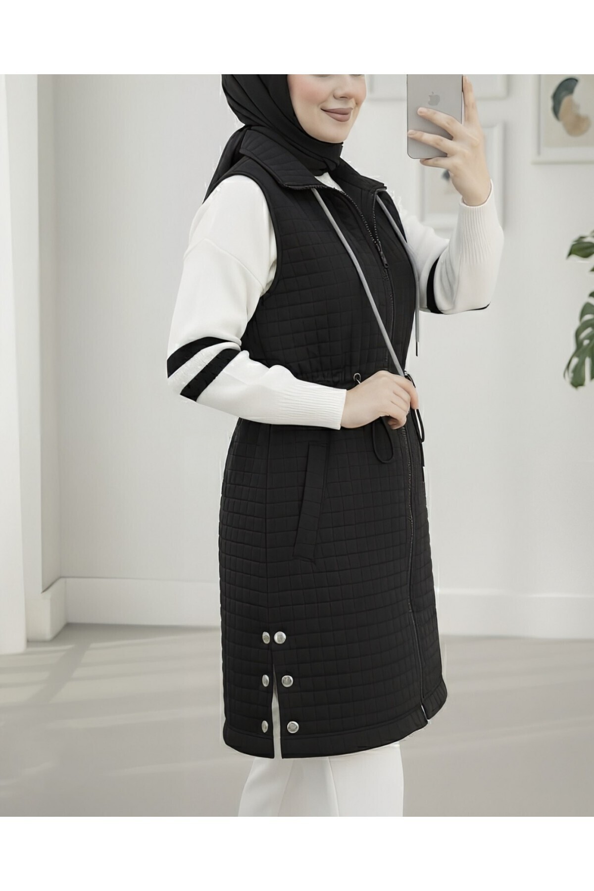 Yakası Bağcıklı Beli Lastikli Cepli Kapitone Yelek -Siyah Yakası Bağcıklı Beli Lastikli Cepli Kapitone Yelek -Siyah TY332-71210 42