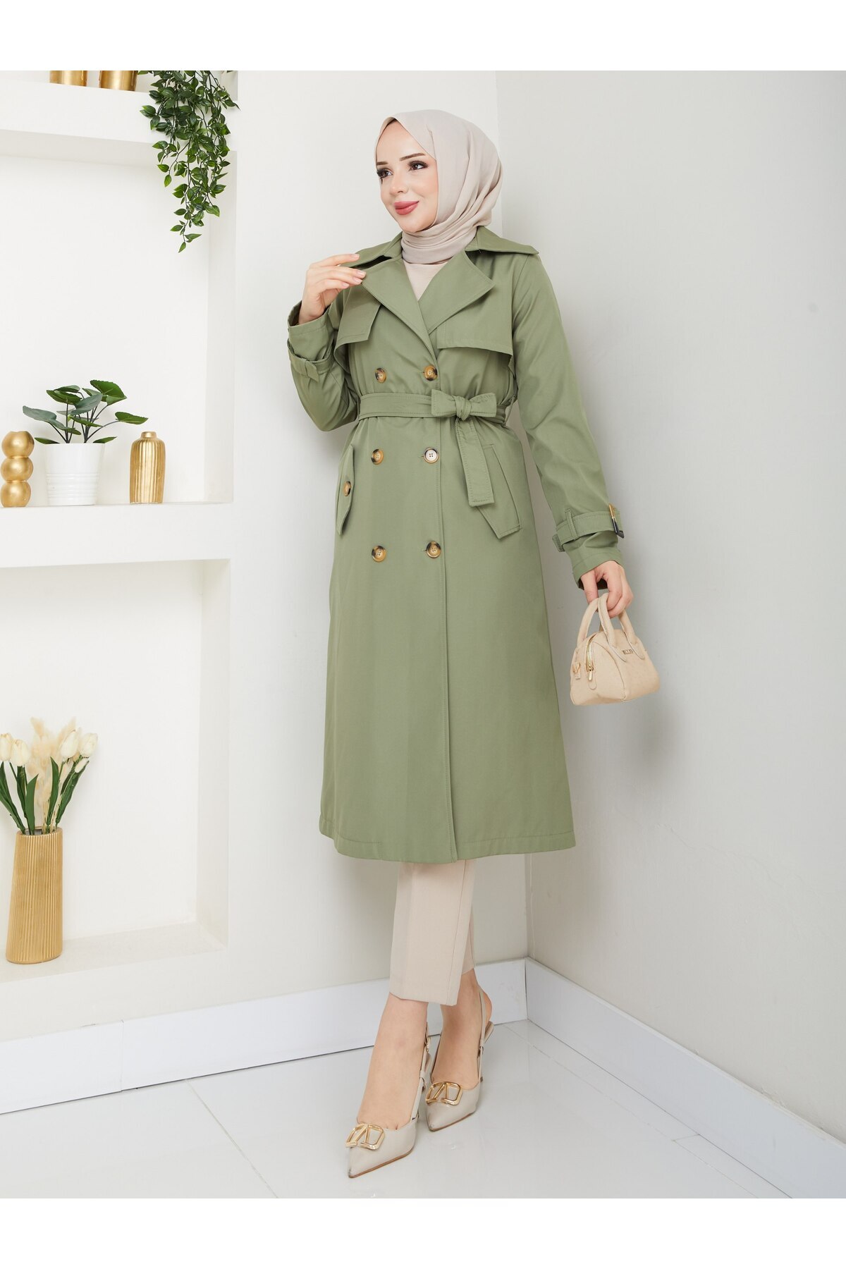 Kadın Arkası Düğme Detaylı Astarlı Trenç Kadın Arkası Düğme Detaylı Astarlı Trenç 254368 46