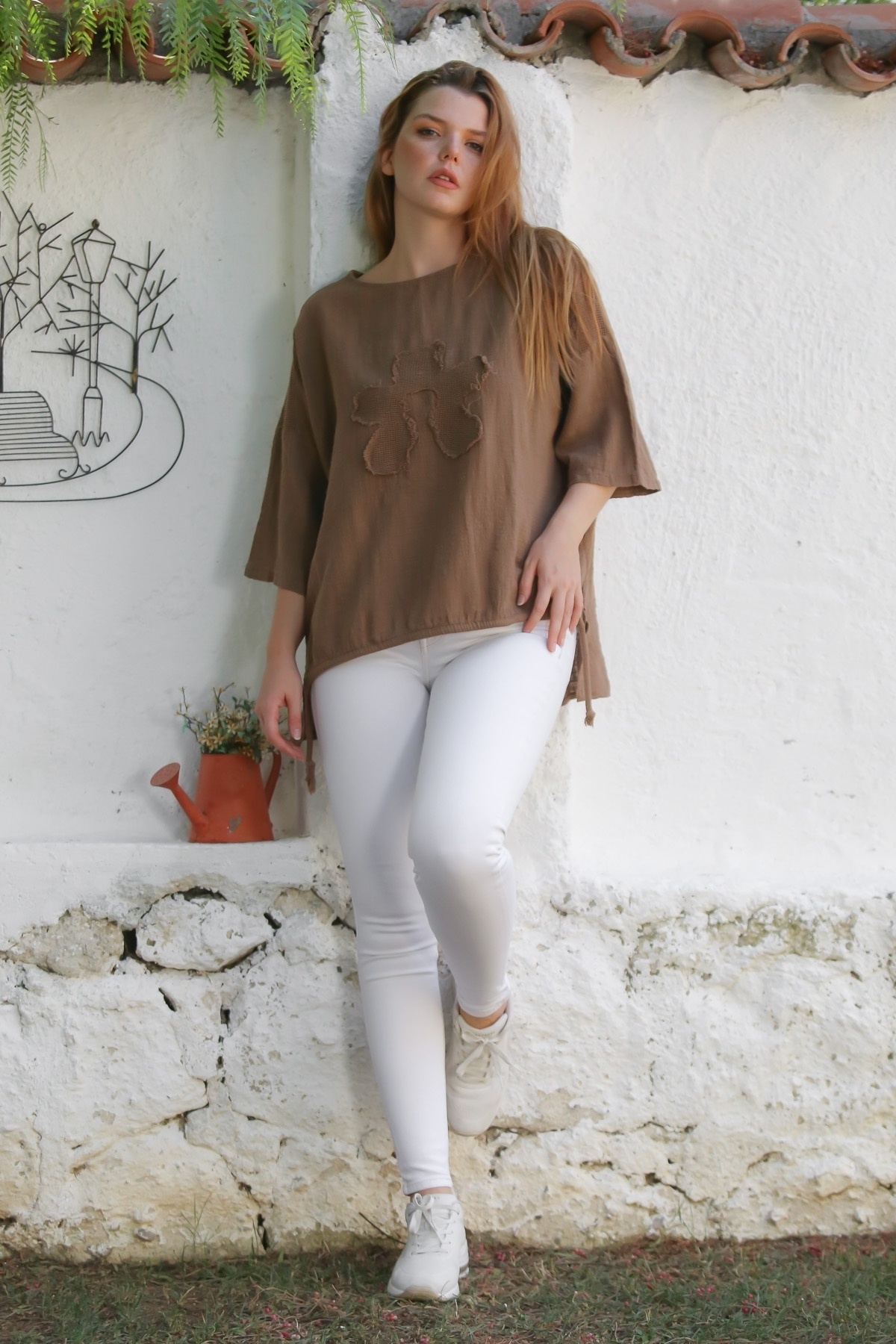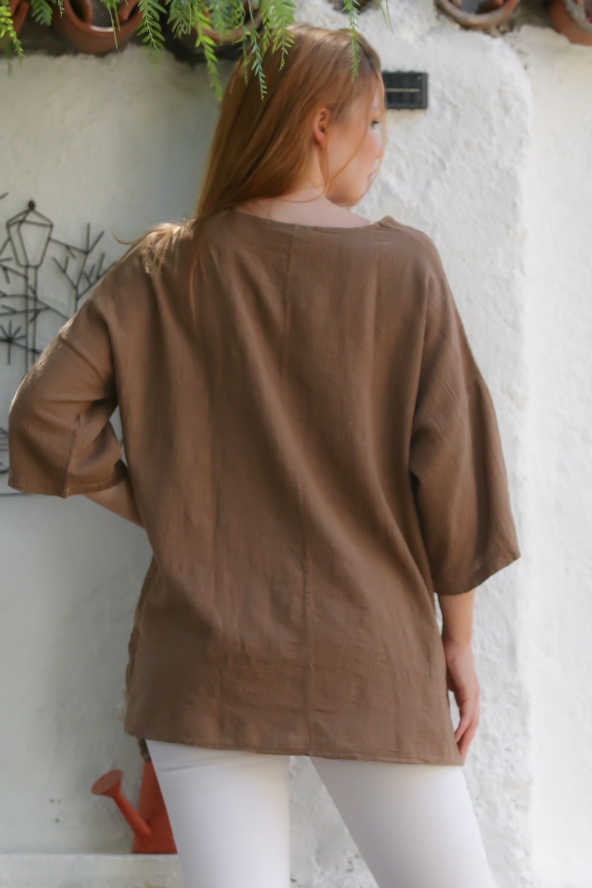 Organik Pamuk Kahverengi Havuz Yaka 3/4 Kol File Detaylı Aplikeli Arkası Uzun Dokuma Bluz 70 68 Organik Pamuk Kahverengi Havuz Yaka 3/4 Kol File Detaylı Aplikeli Arkası Uzun Dokuma Bluz 70 68 M10010200BL91174 Standart