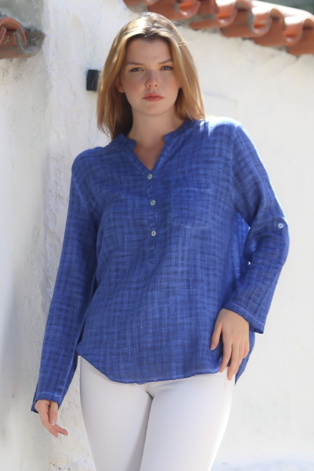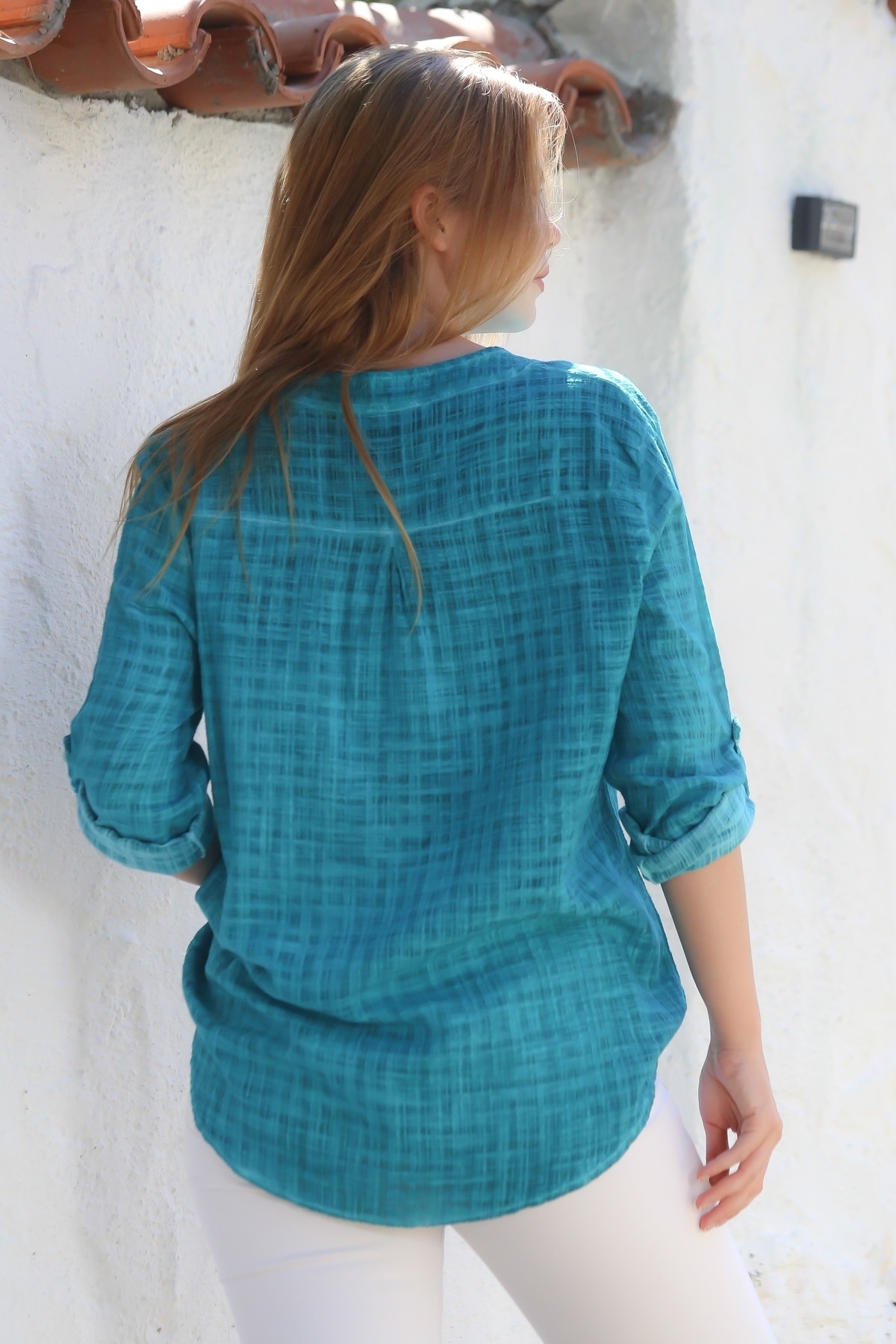 Organik Pamuk Turkuaz Hakim Yaka Düğmeli Uzun Kollu Dokulu Tek Cepli Yıkamalı Dokuma Bluz 70 60 Organik Pamuk Turkuaz Hakim Yaka Düğmeli Uzun Kollu Dokulu Tek Cepli Yıkamalı Dokuma Bluz 70 60 M10010200BL91193 Standart
