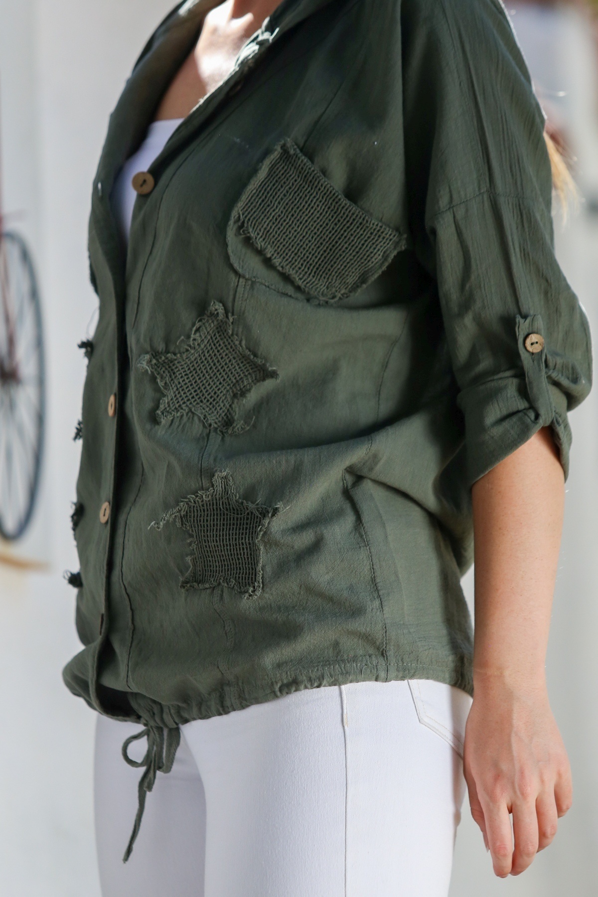 Organik Pamuk Haki Kapüşonlu Düğmeli Uzun Kollu Cepli File Detaylı Aplikeli Dokuma Ceket 70 60 Organik Pamuk Haki Kapüşonlu Düğmeli Uzun Kollu Cepli File Detaylı Aplikeli Dokuma Ceket 70 60 M10210100CE97963 XL