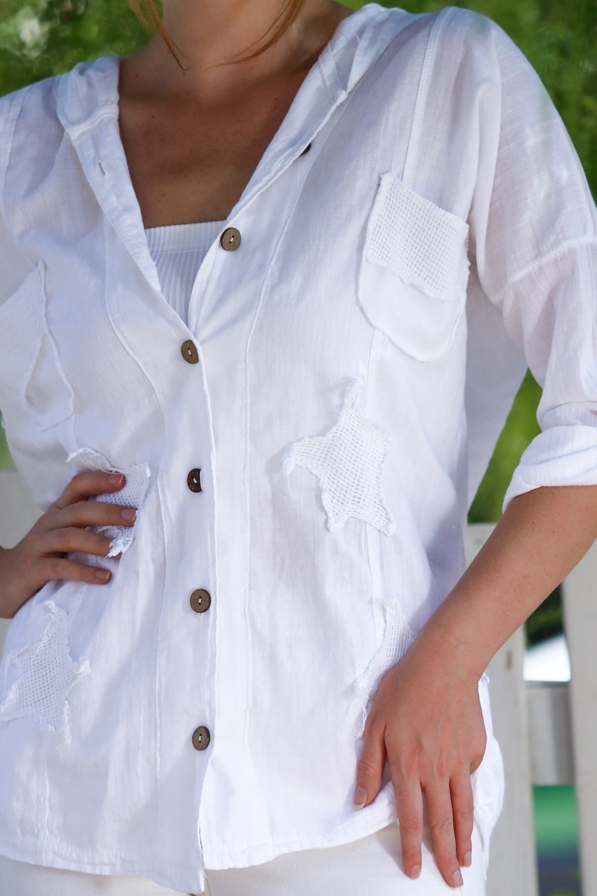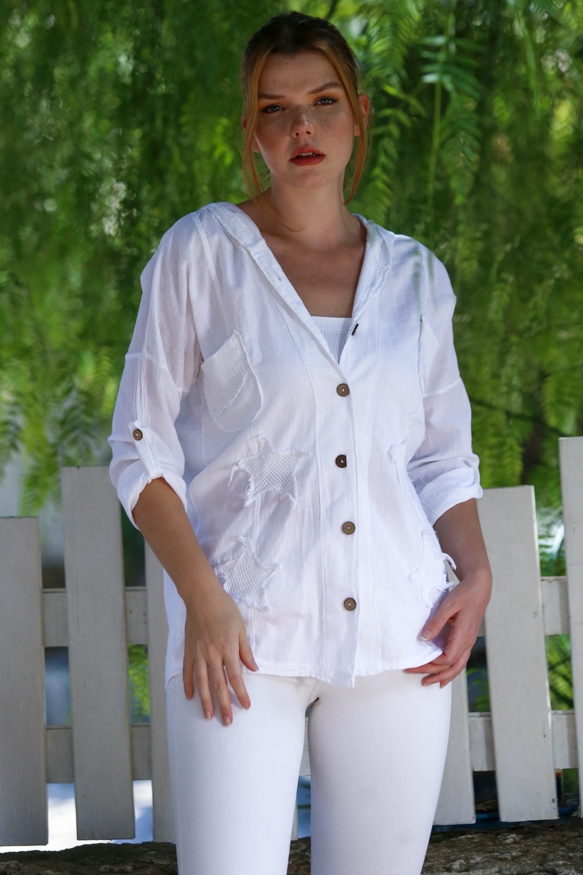 Organik Pamuk Beyaz Kapüşonlu Düğmeli Uzun Kollu Cepli File Detaylı Aplikeli Dokuma Ceket 70 60 Organik Pamuk Beyaz Kapüşonlu Düğmeli Uzun Kollu Cepli File Detaylı Aplikeli Dokuma Ceket 70 60 M10210100CE97963 XL