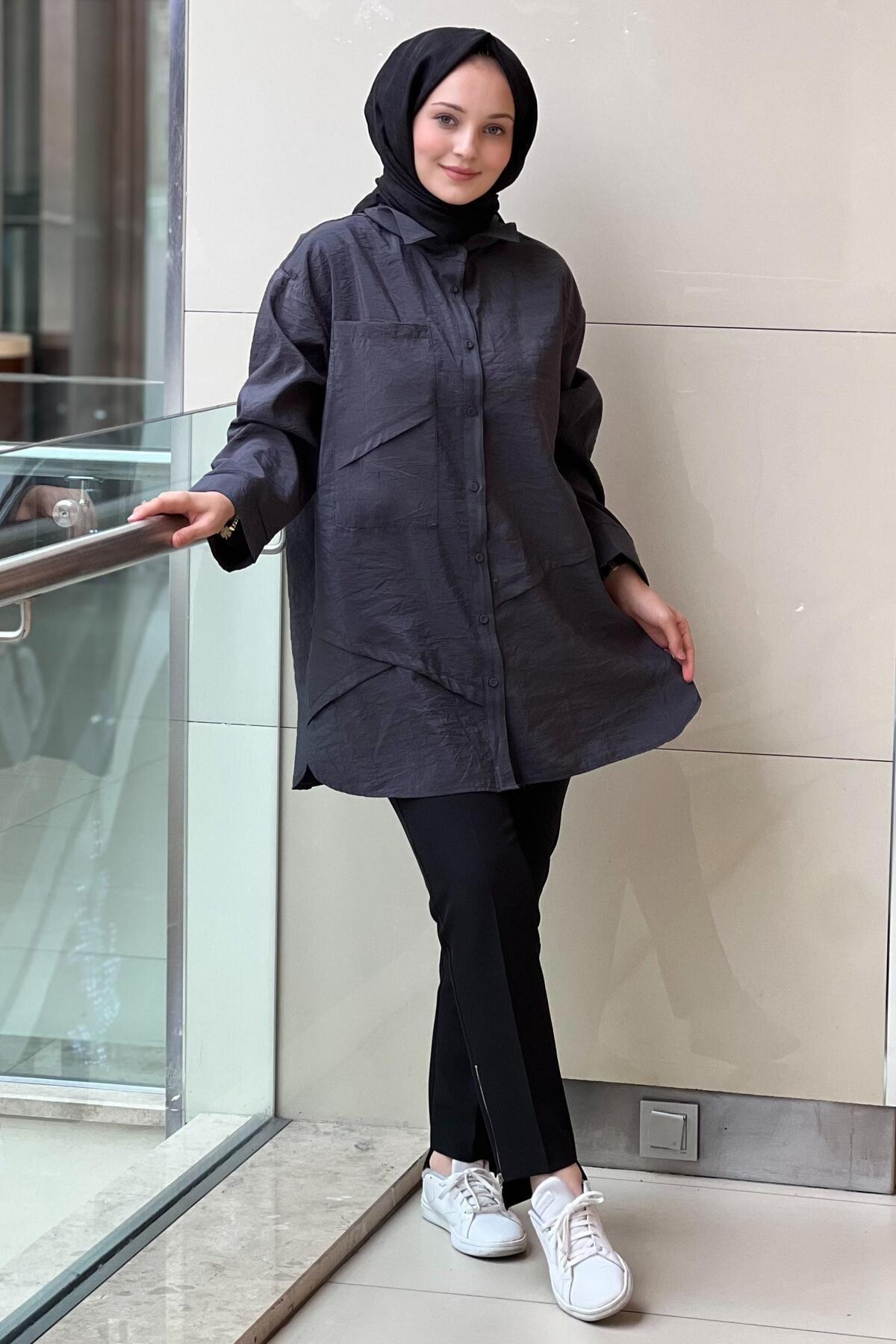 Önden Düğmeli Uzun Cep Detaylı Gömlek Önden Düğmeli Uzun Cep Detaylı Gömlek 26KCRMGML6148 3