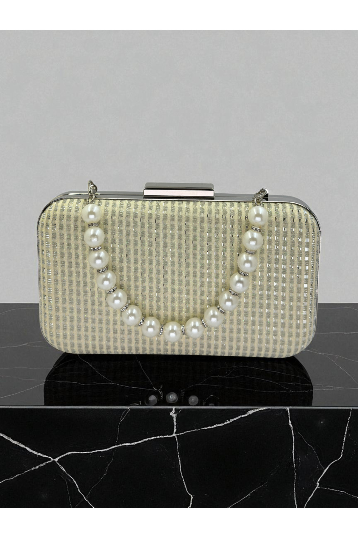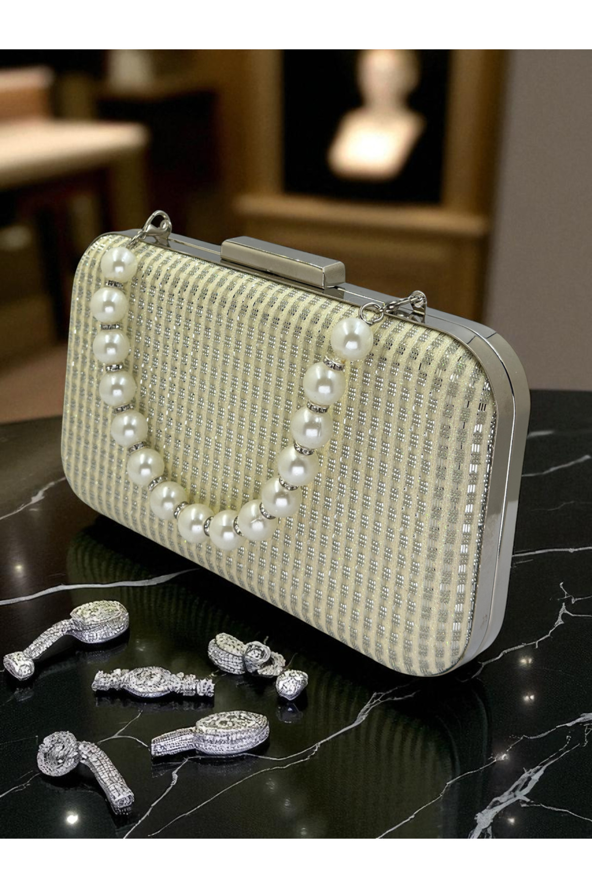 Ekru Renk İncili Saplı Simli Tel Kırma Kadın Abiye Çanta Düğün Nişan Mezuniyet Ekru Renk İncili Saplı Simli Tel Kırma Kadın Abiye Çanta Düğün Nişan Mezuniyet WF 130 Tel Kırma تک سایز