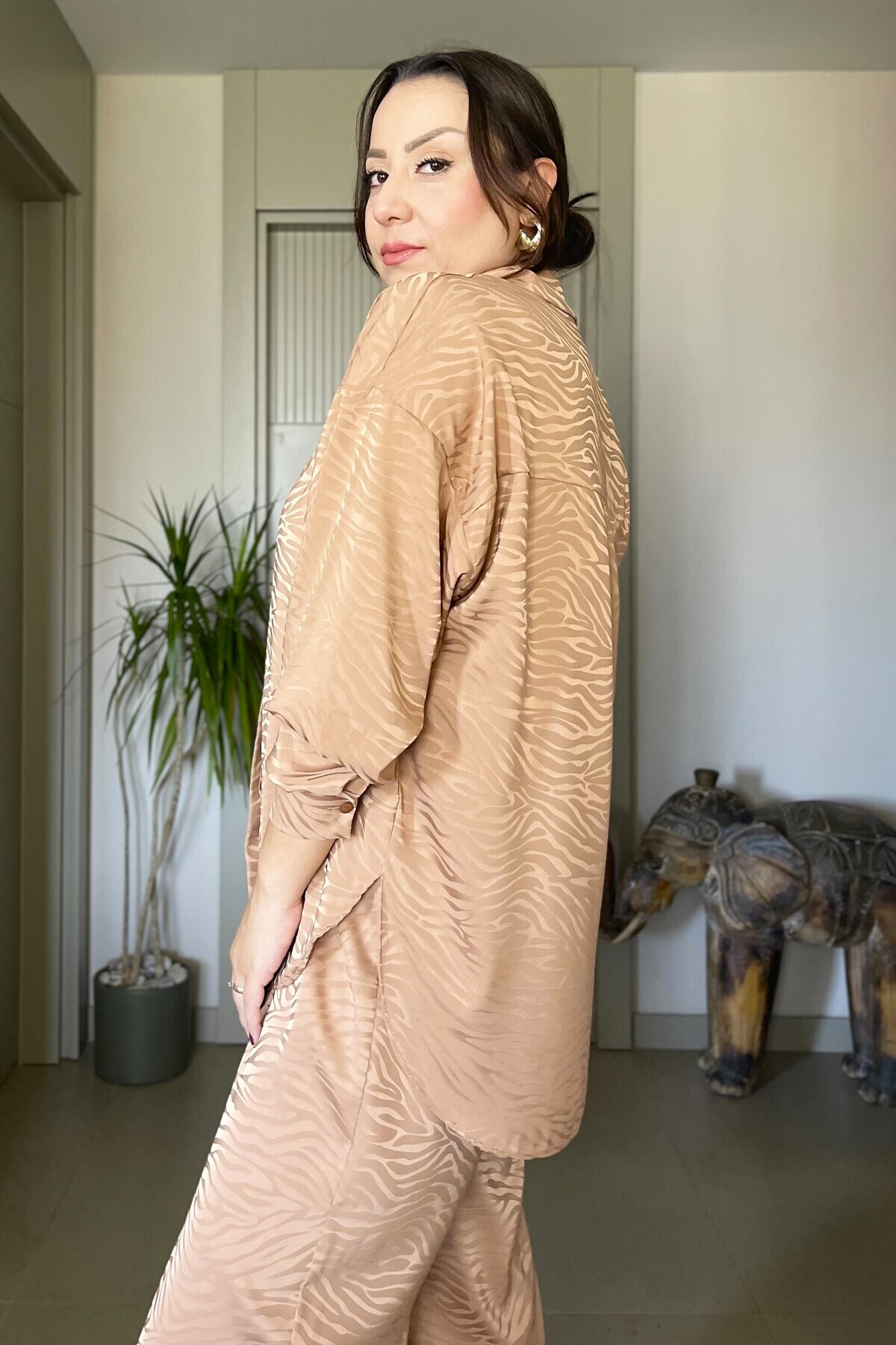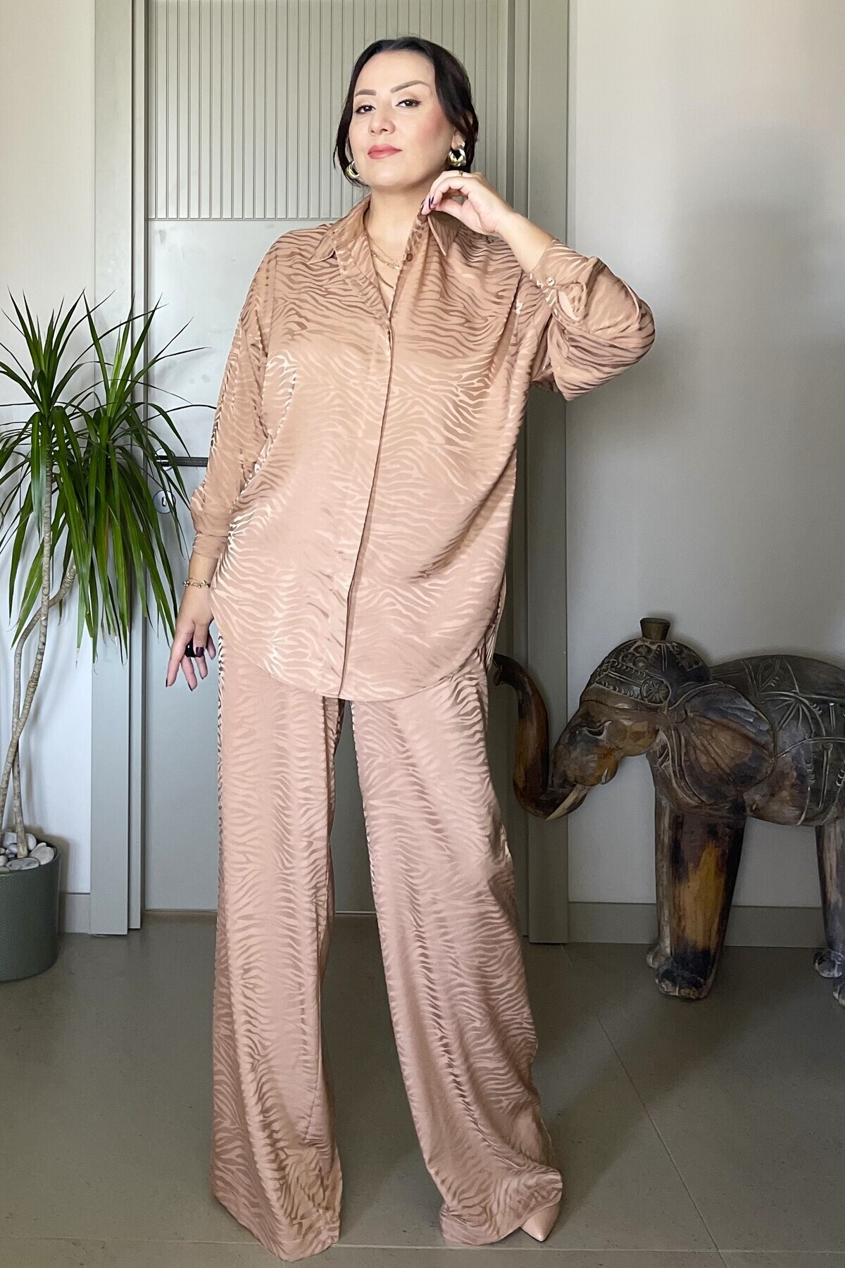 Saten Dokulu Zebra Desenli Tiril Gömlek Pantolon Takım Saten Dokulu Zebra Desenli Tiril Gömlek Pantolon Takım ZST XL