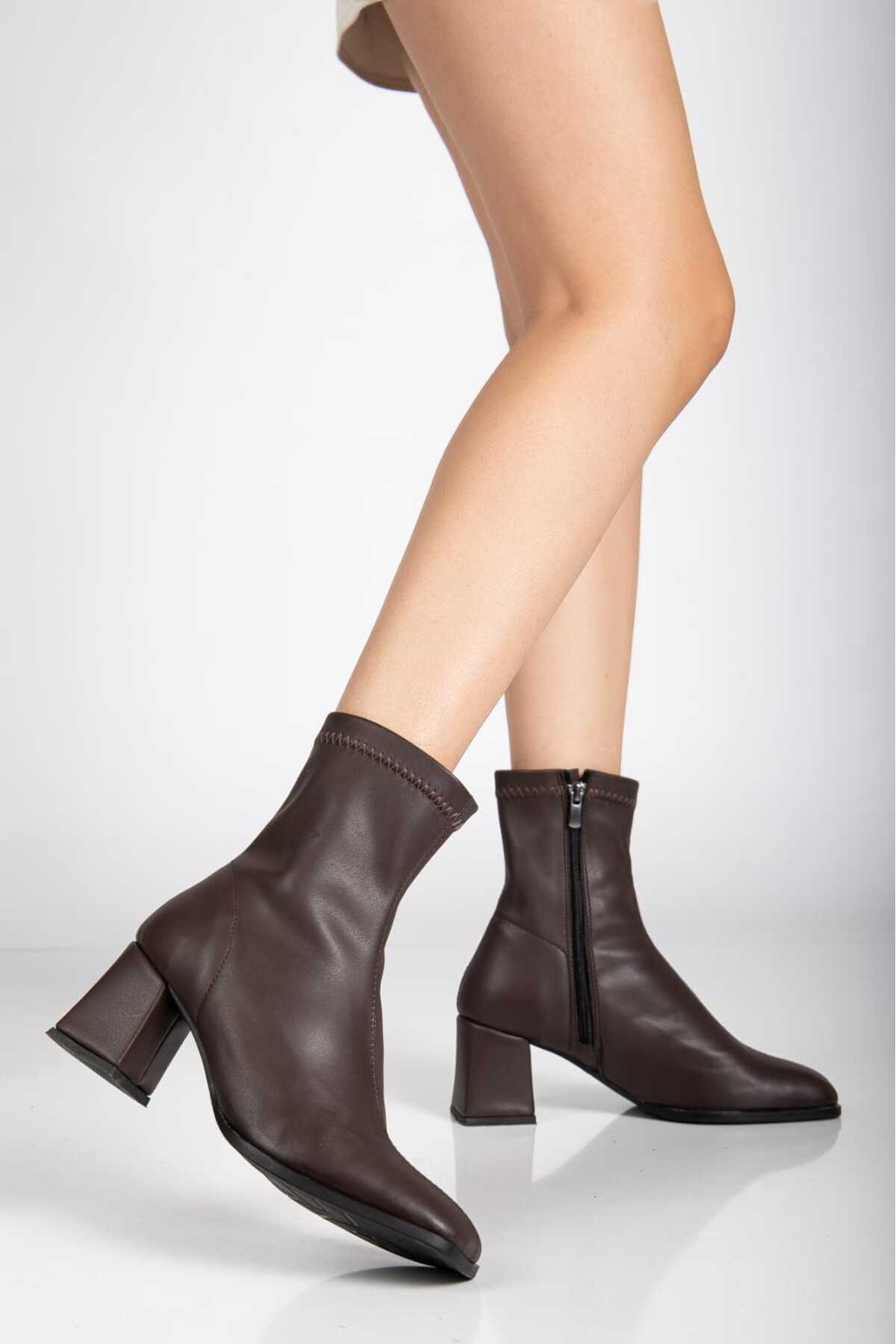 Cİlt Kadın Kalın Kare Burun Topuklu Fermuarlı Çorap Kısa Bot Cİlt Kadın Kalın Kare Burun Topuklu Fermuarlı Çorap Kısa Bot AS-VES-22578S 40