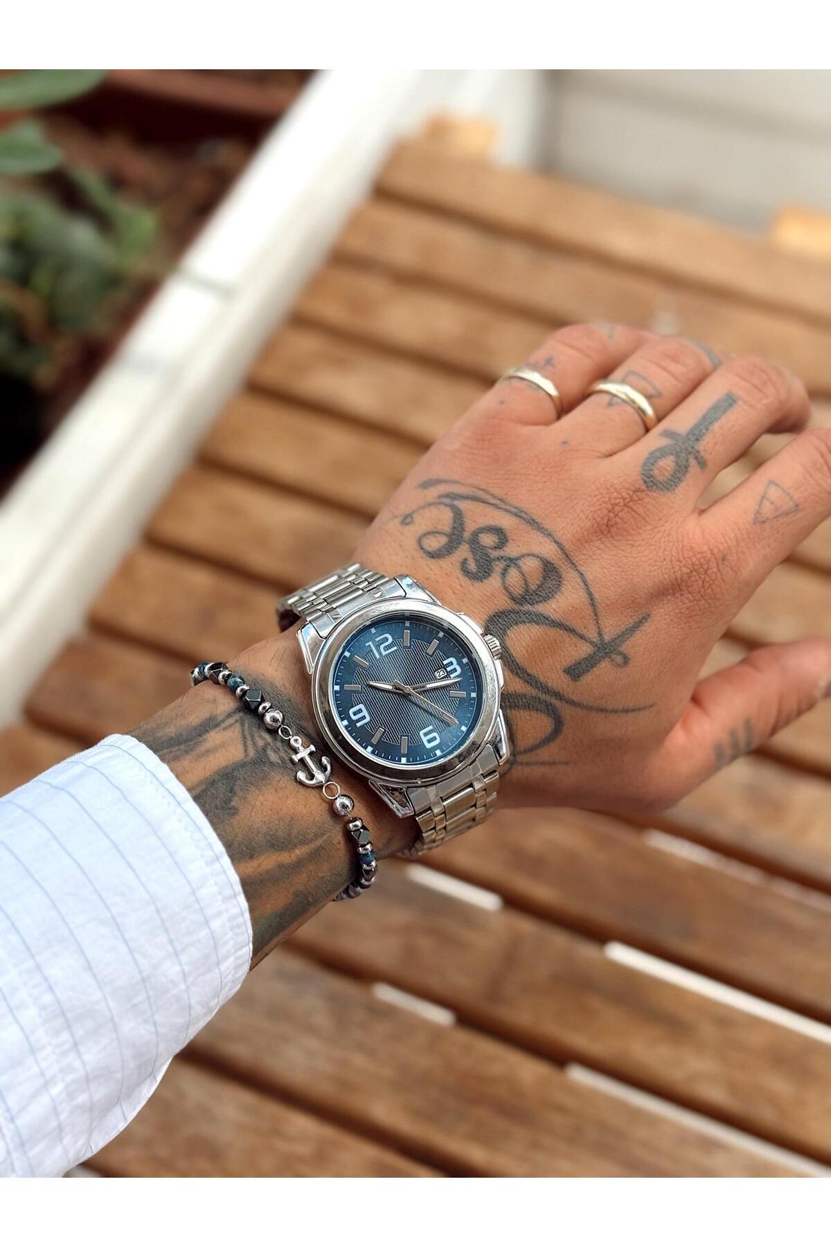 Gümüş Metal Kordonlu, Lacivert Kadranlı, Beyaz Rakamlı ve Takvim Göstergeli Klasik Erkek Kol Saati Gümüş Metal Kordonlu, Lacivert Kadranlı, Beyaz Rakamlı ve Takvim Göstergeli Klasik Erkek Kol Saati FJSEG27002 تک سایز