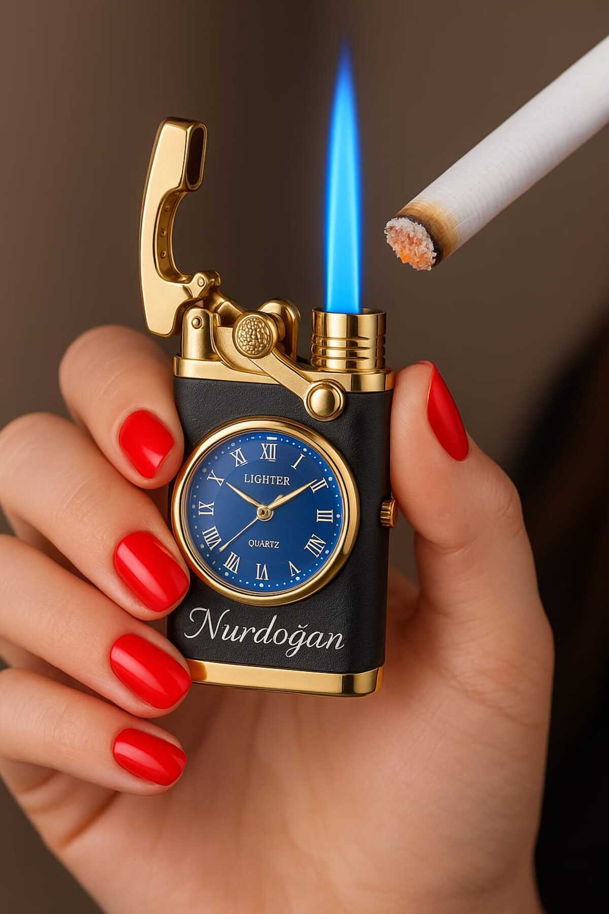 Kişiye Özel Lüks Saatli Pürmüzlü Saatli Çakmak Kişiye Özel Lüks Saatli Pürmüzlü Saatli Çakmak klasçakmak تک سایز