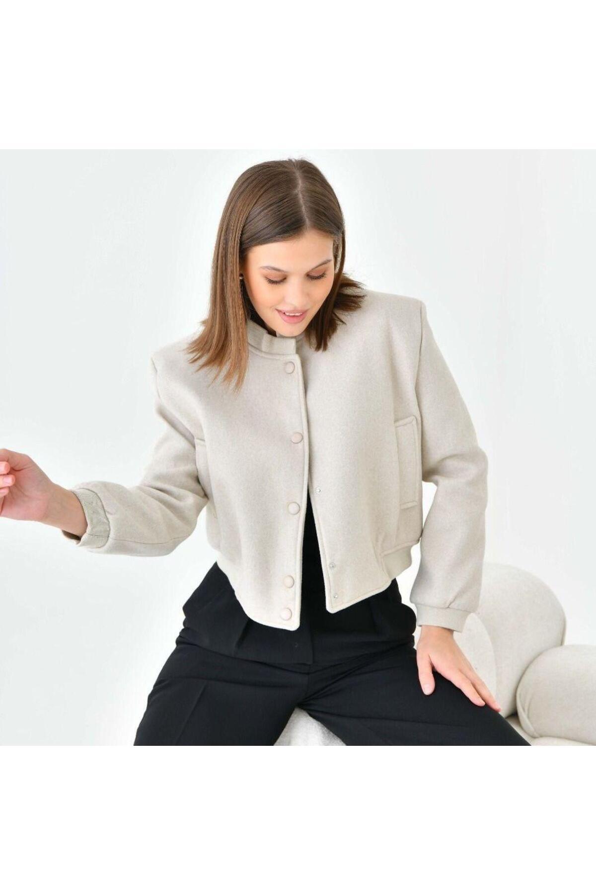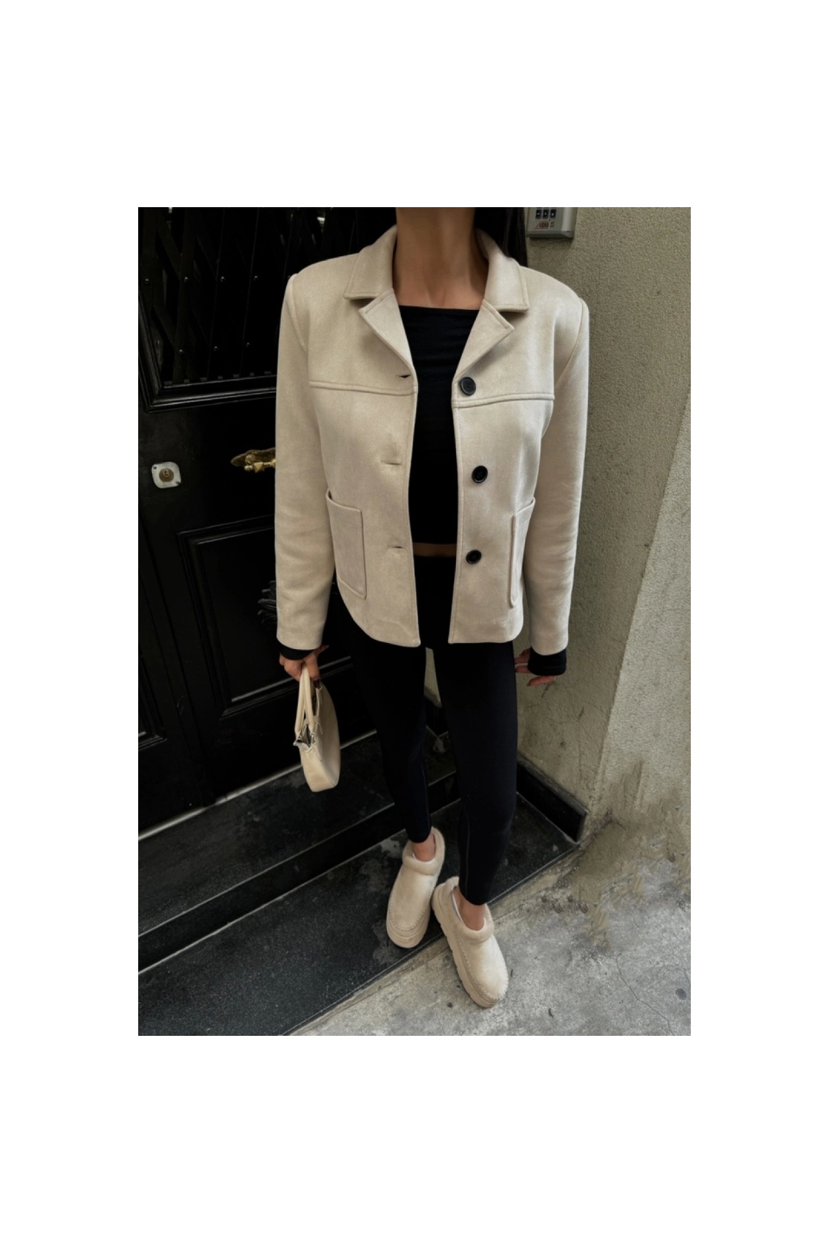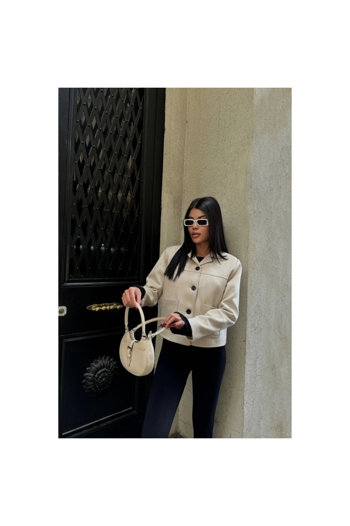 Yumuşak SÜET Crop Ceket, Cep Detaylı - Taş Rengi Yumuşak SÜET Crop Ceket, Cep Detaylı - Taş Rengi BNRT6V9ULB L