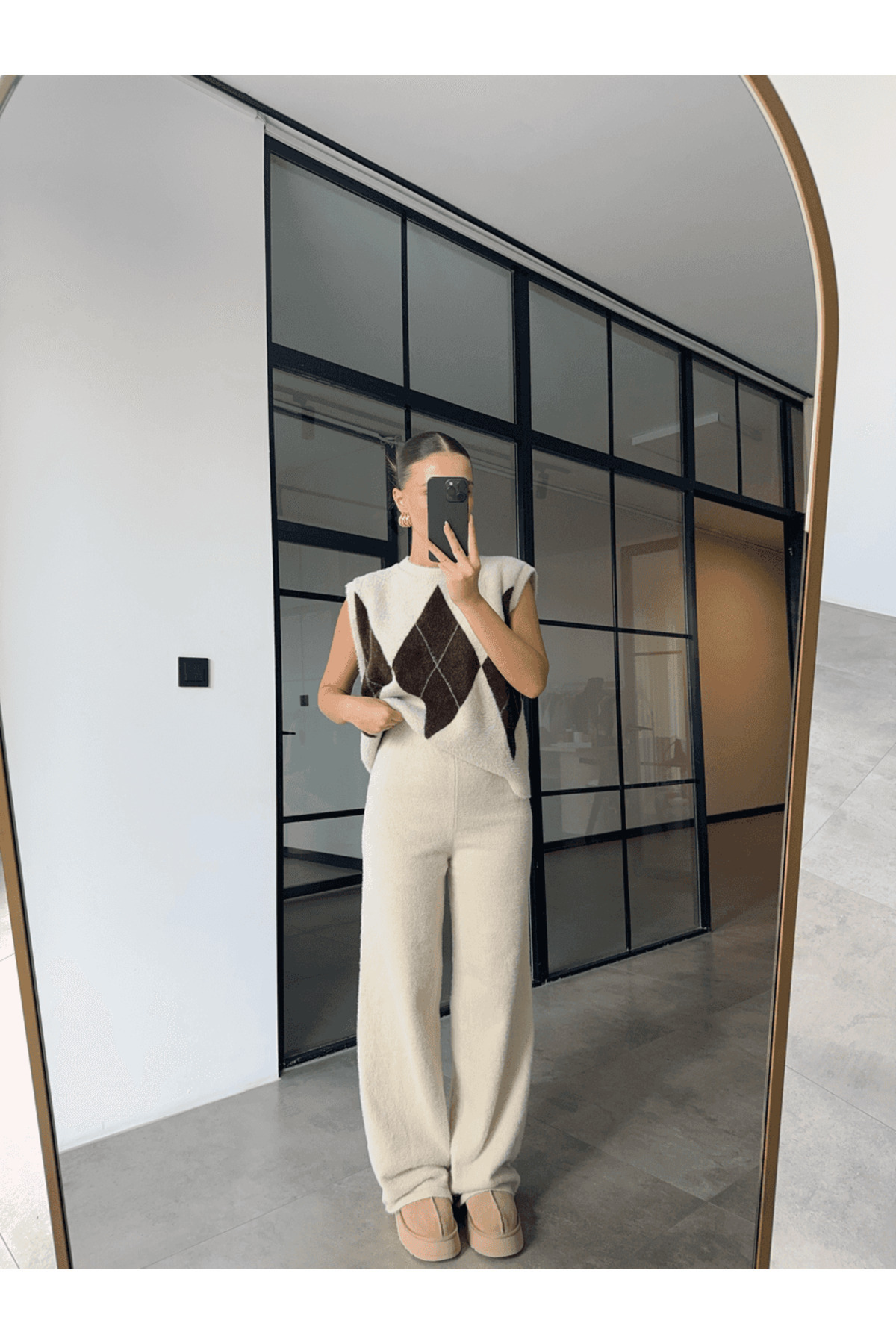 PELUŞ DOKULU BEJ RENGİ TRİKO PANTOLON PELUŞ DOKULU BEJ RENGİ TRİKO PANTOLON BB26FA5245J Standart