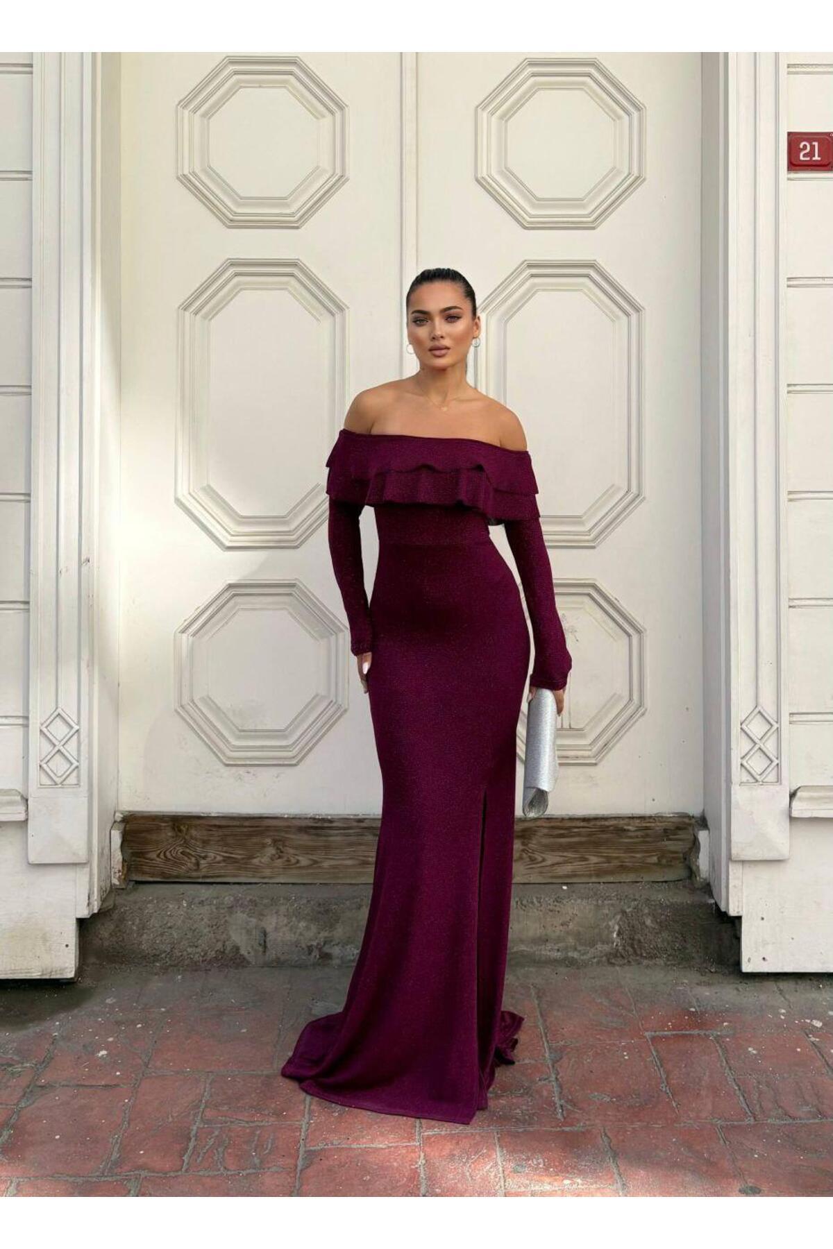 Fkuro Simli Esnek Kumaş Ön Çift Volan Abiye Elbise KIRMIZI 583112 Fkuro Simli Esnek Kumaş Ön Çift Volan Abiye Elbise KIRMIZI 583112 L