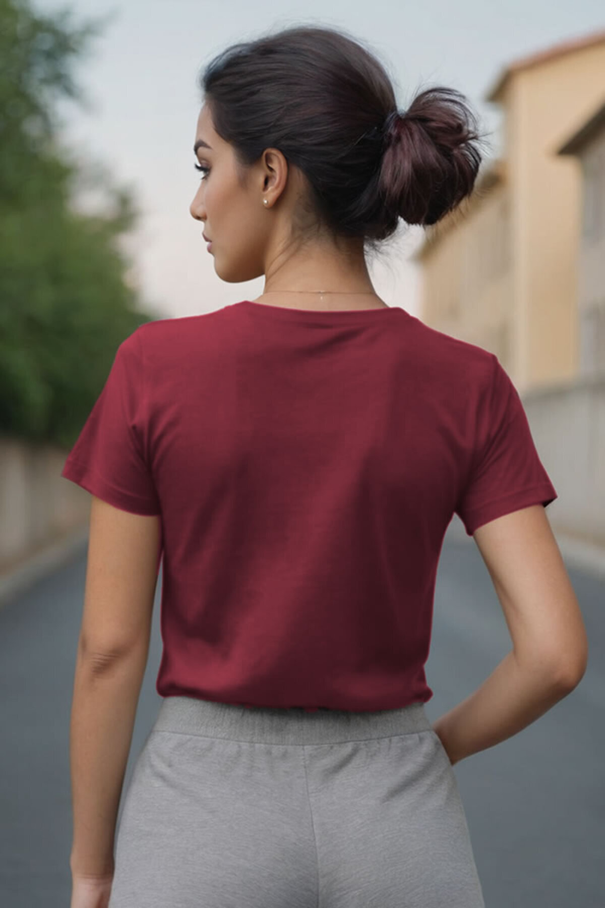 Basic Bordo V Yaka Tişört Basic Bordo V Yaka Tişört SQ101179 XL