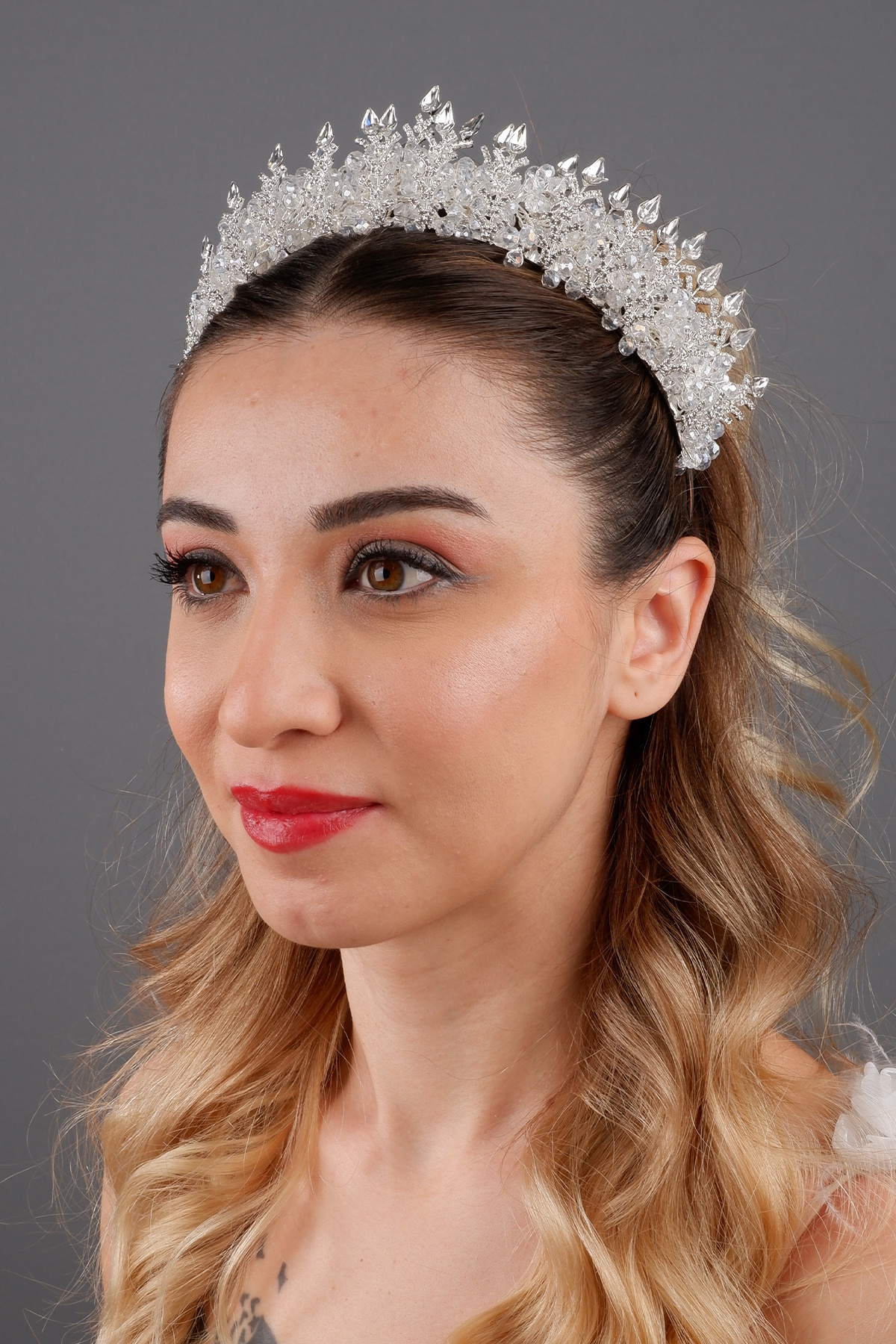 مشخصات فنی Dahlia Zarif Kristal Gelin Tacı Abiye Nişan Düğün Nikah Saç Aksesuarı