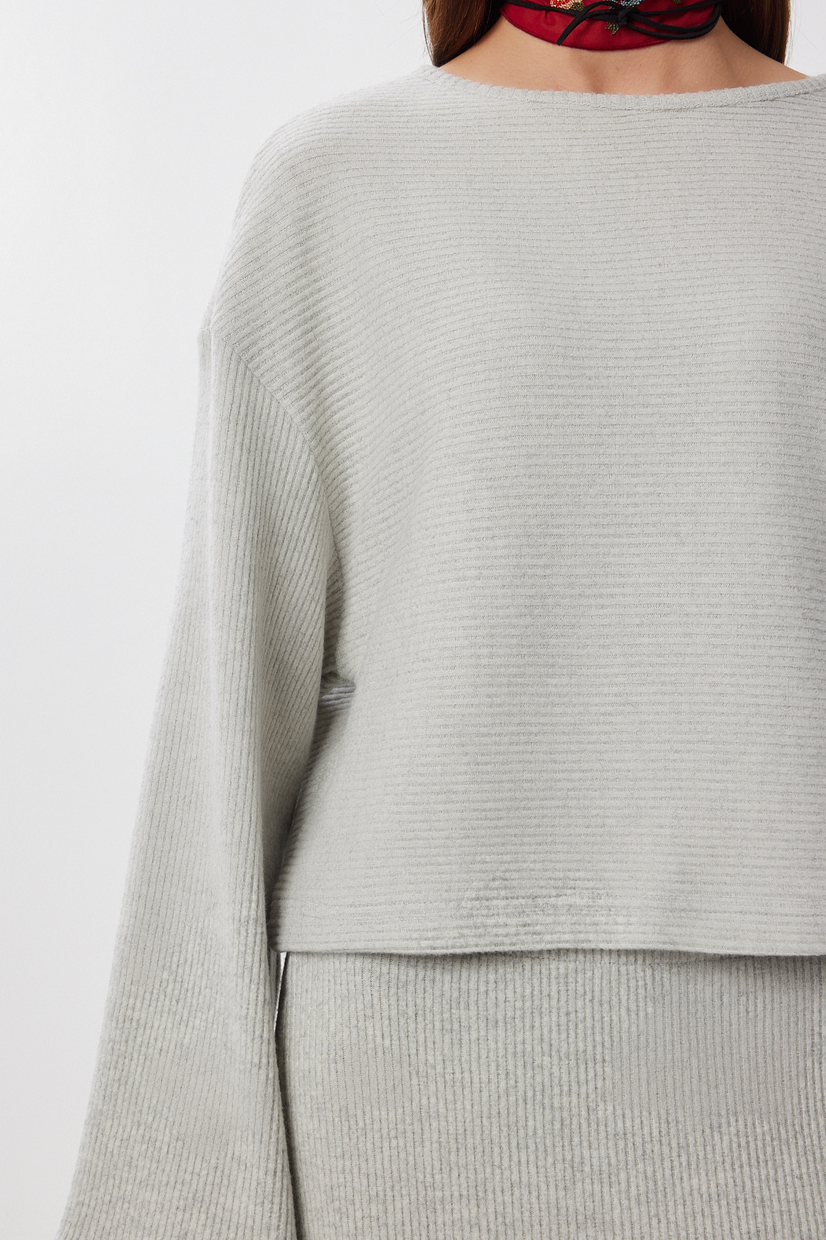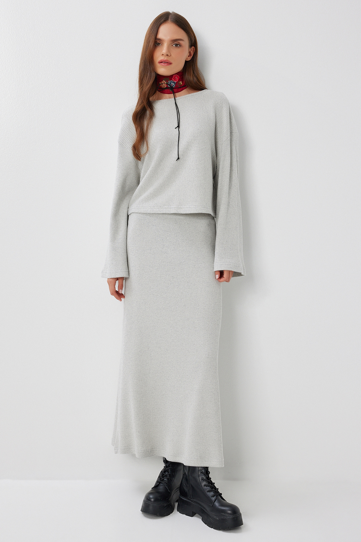Fitilli Örme Bluz-Etek Takım LRG0044 GRİ MELANJ Fitilli Örme Bluz-Etek Takım LRG0044 GRİ MELANJ 40