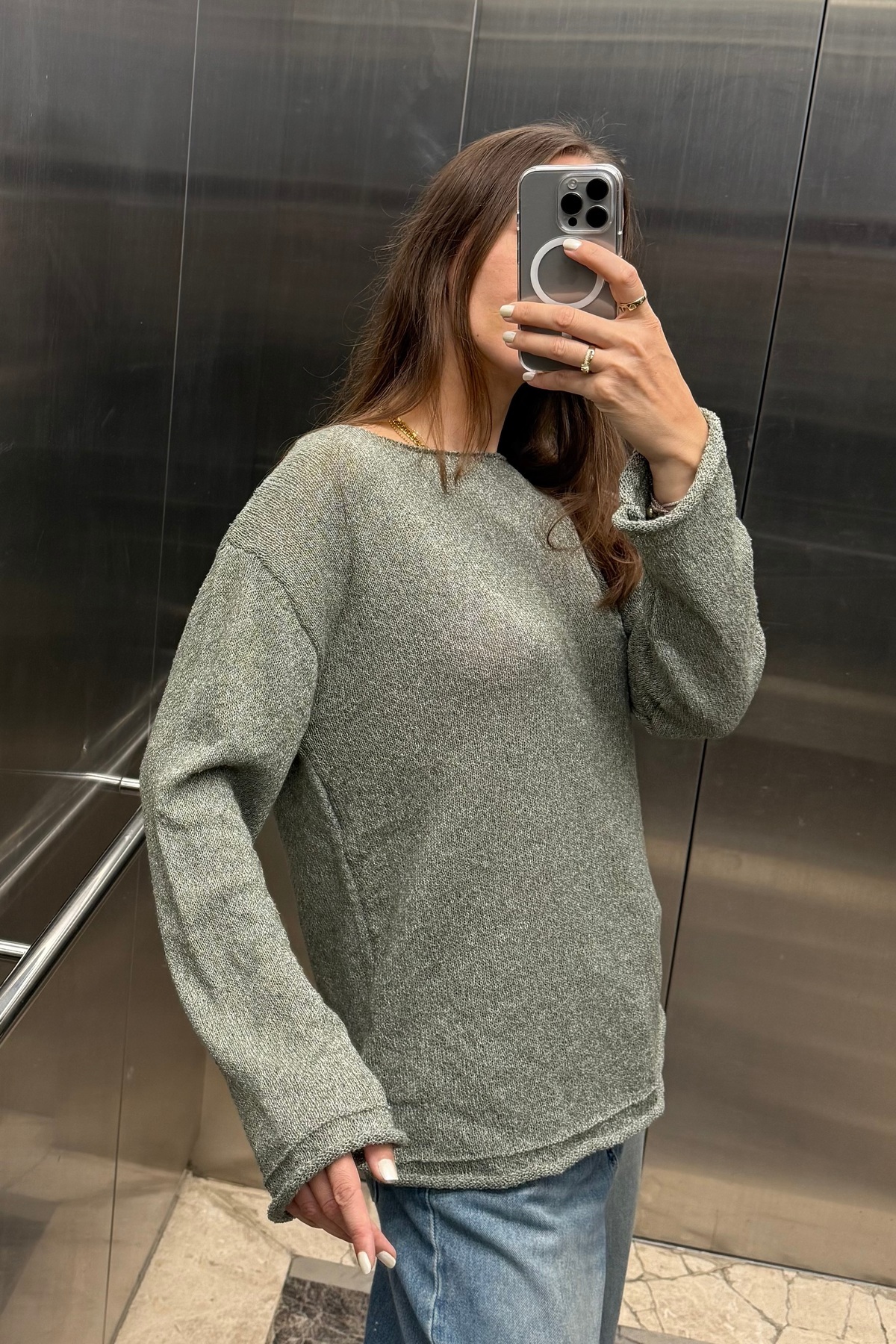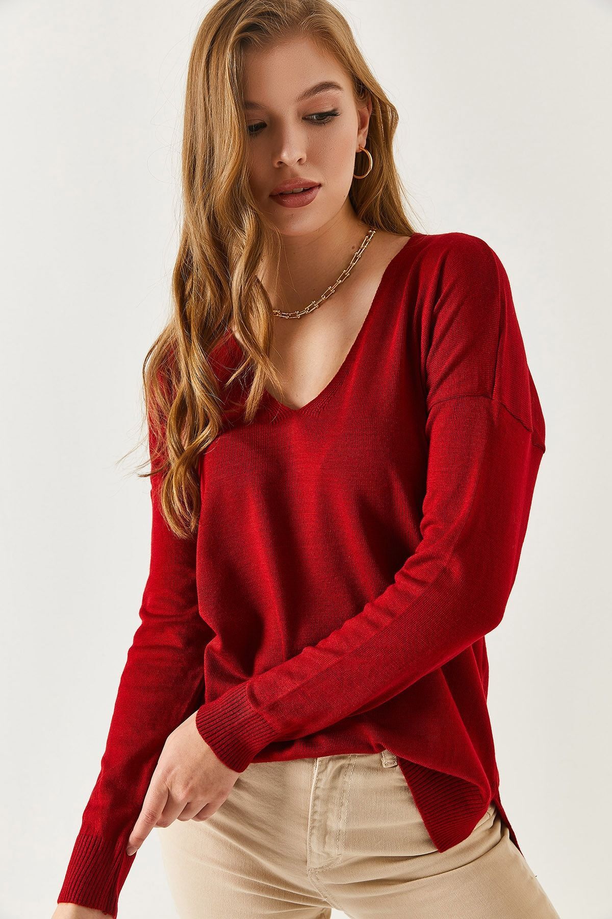 Basic Oversize Kayık Yaka Dokulu Triko Kazak AW25KZ0032 Basic Oversize Kayık Yaka Dokulu Triko Kazak AW25KZ0032 S/M