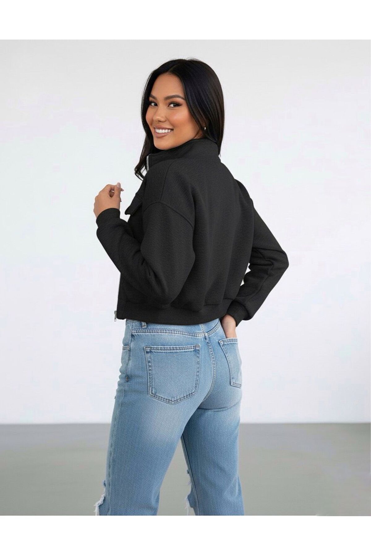 Kadın Dik Yaka Cepli Crop Ceket Kadın Dik Yaka Cepli Crop Ceket CROPCEP XL