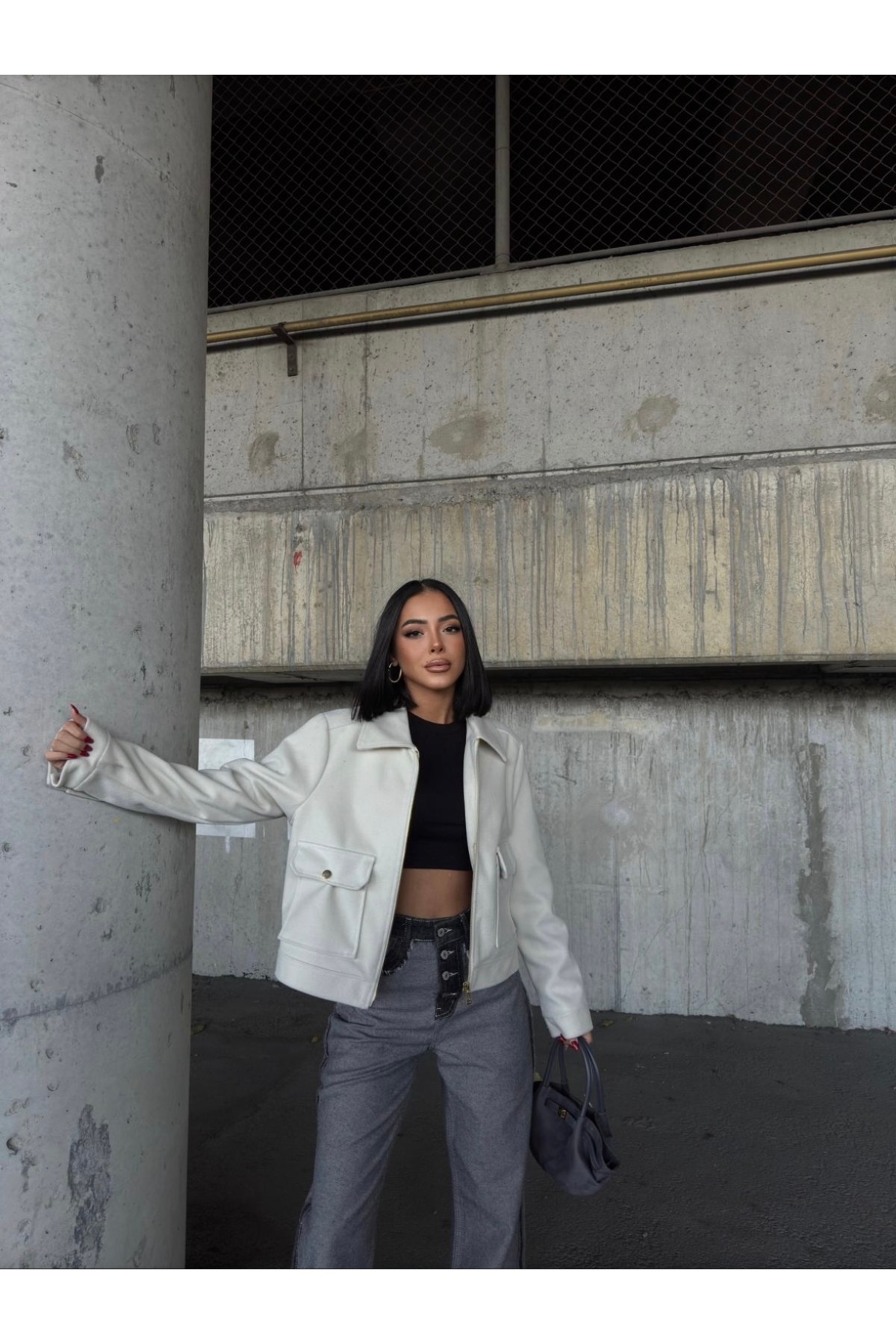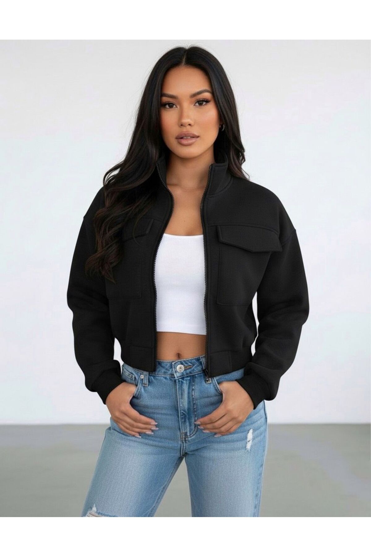 Kadın Dik Yaka Cepli Crop Ceket Kadın Dik Yaka Cepli Crop Ceket CROPCEP XL
