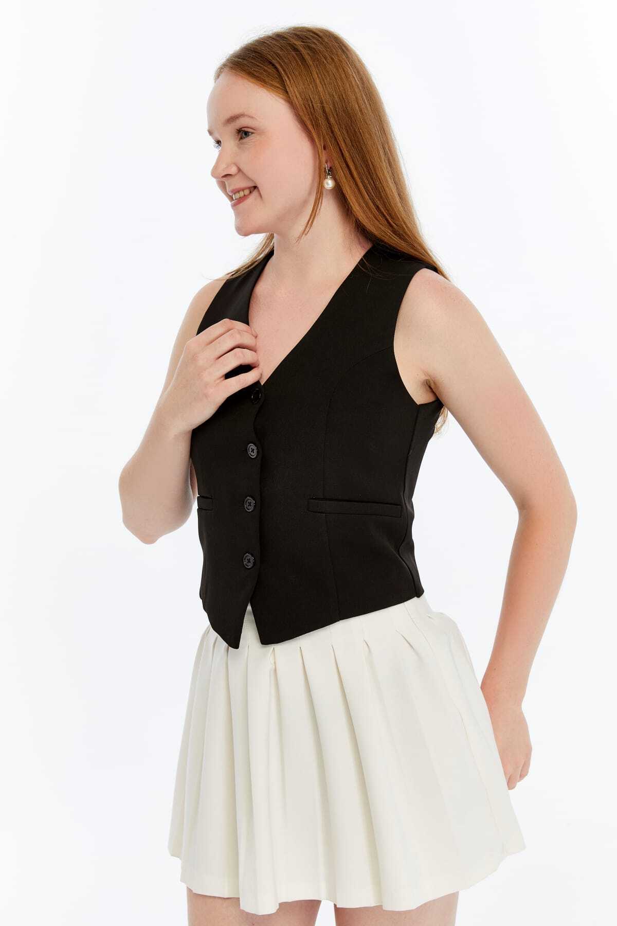 Kadın Astarlı Vücuda Oturan Düğmeli Şık Görünümlü V Yaka Yelek Kadın Astarlı Vücuda Oturan Düğmeli Şık Görünümlü V Yaka Yelek lvmy6000 XL