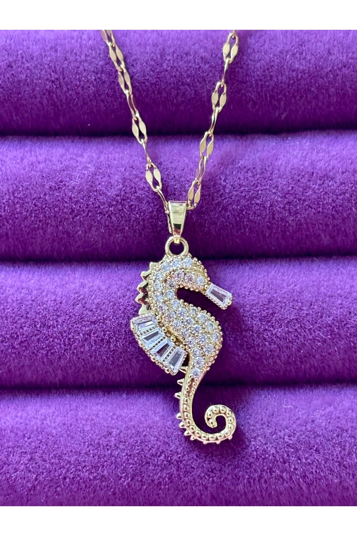 925 Ayar Gold Kaplama Zirkon Taşlı Deniz Atı Kolye Seahorse Kolye 925 Ayar Gold Kaplama Zirkon Taşlı Deniz Atı Kolye Seahorse Kolye at-kolyegold Standart