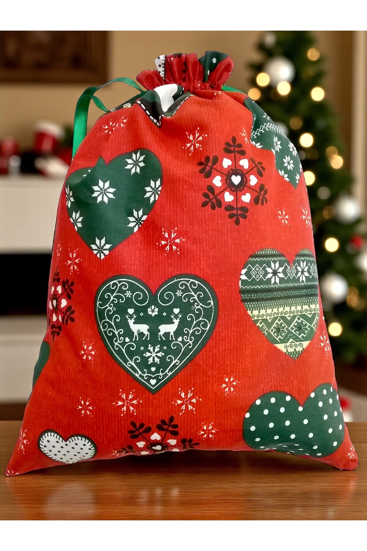 Yılbaşı Temalı Kalpli Geyikli Kar Taneli Kumaş Hediye Kesesi – Kırmızı Yeşil 25x35 cm Yılbaşı Temalı Kalpli Geyikli Kar Taneli Kumaş Hediye Kesesi – Kırmızı Yeşil 25x35 cm Ko200-3 تک سایز