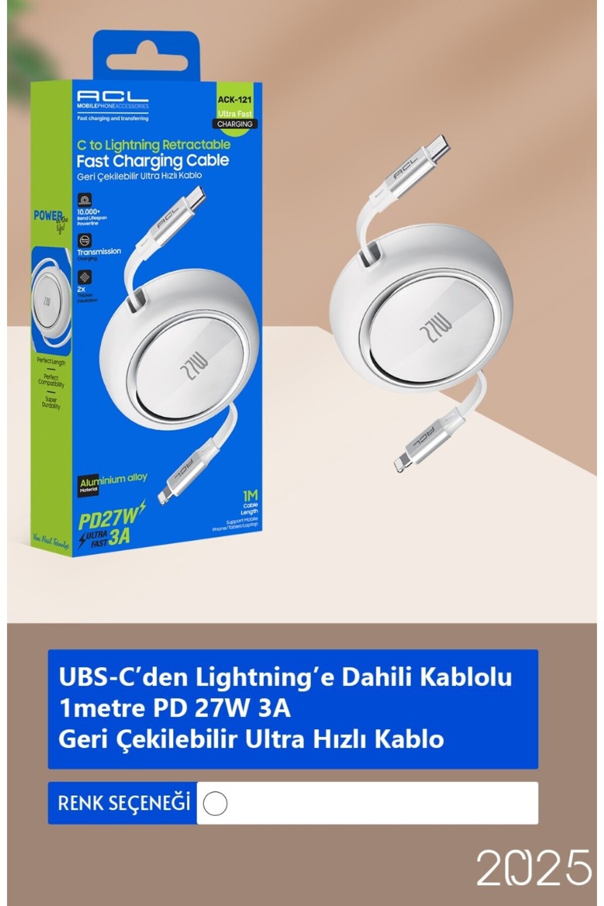 ACK-121 - 1 metre Uzunluğunda PD 27W 3A Geri Çekilebilir Ultra Hızlı Şarj Kablosu ACK-121 - 1 metre Uzunluğunda PD 27W 3A Geri Çekilebilir Ultra Hızlı Şarj Kablosu ACL ACK-121 تک سایز