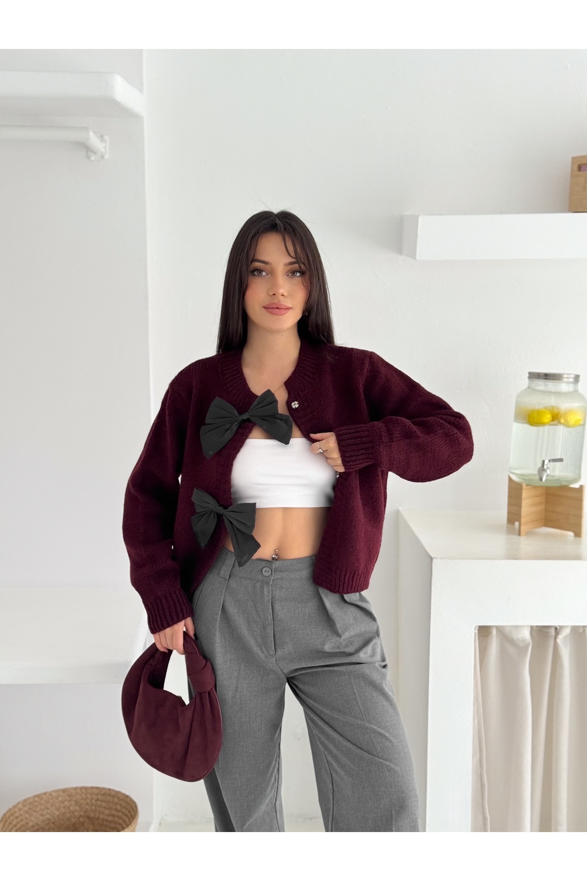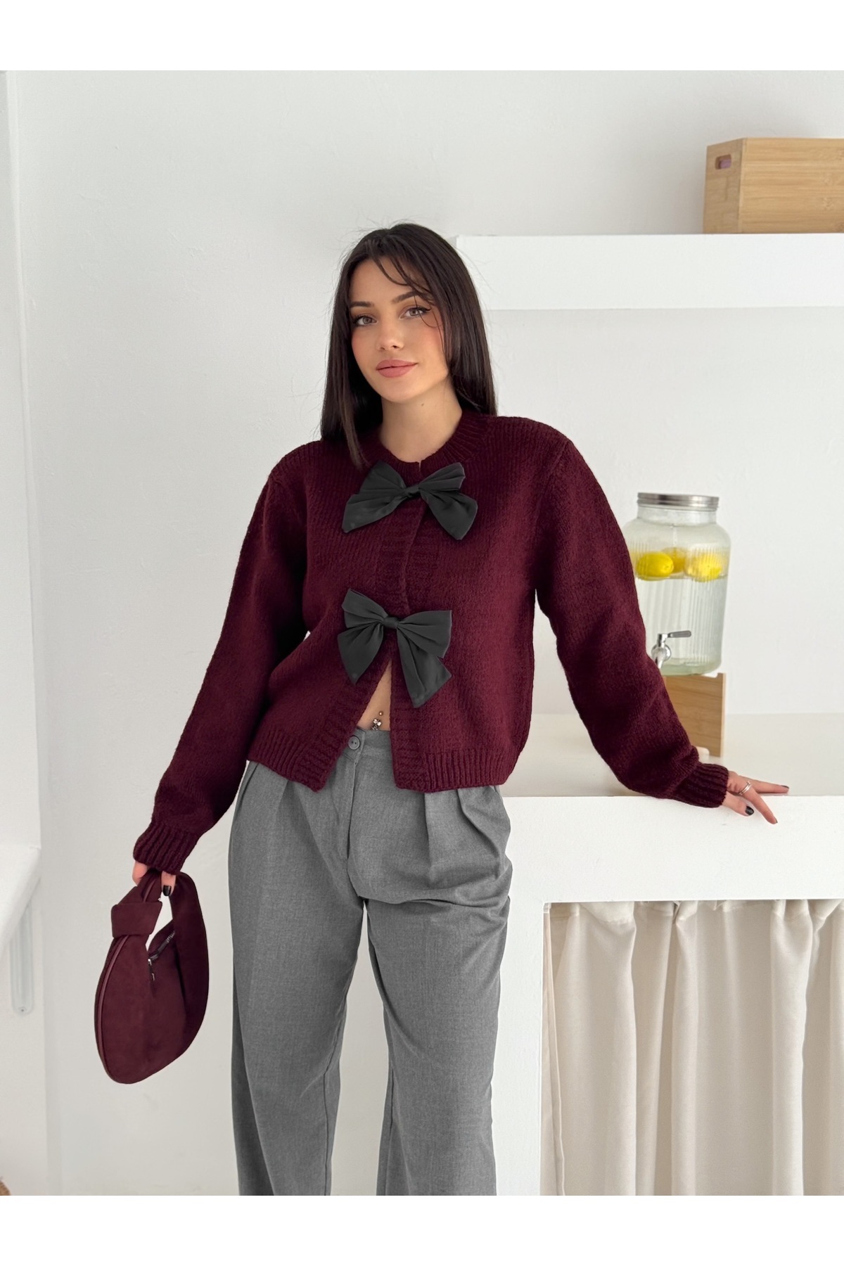 Kurdele / Fiyonk Detaylı Triko Hırka Kurdele / Fiyonk Detaylı Triko Hırka fsg1626 Standart