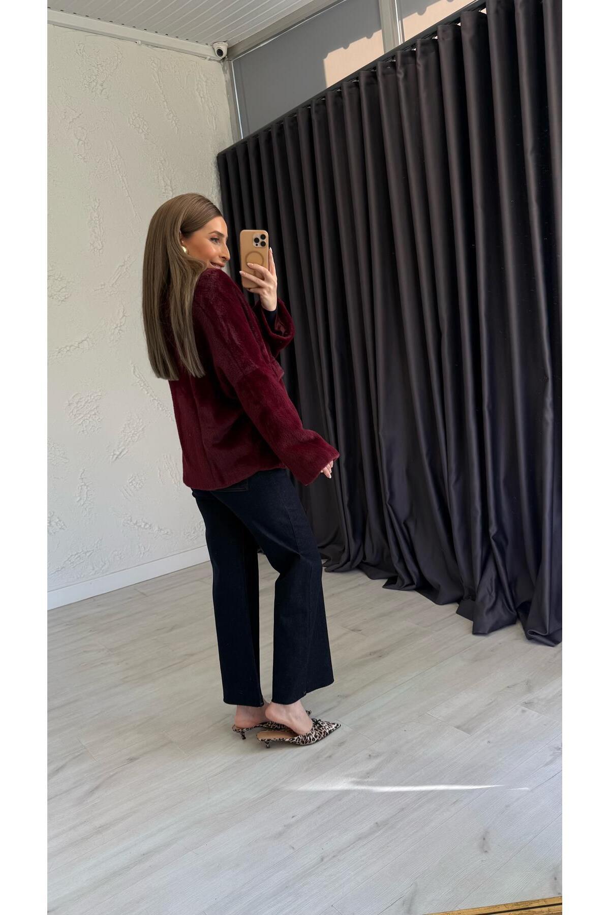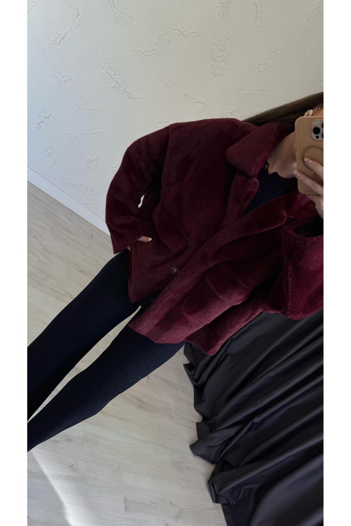 Ön Cepli Premium Peluş Ceket Bordo Ön Cepli Premium Peluş Ceket Bordo 7501 Standart