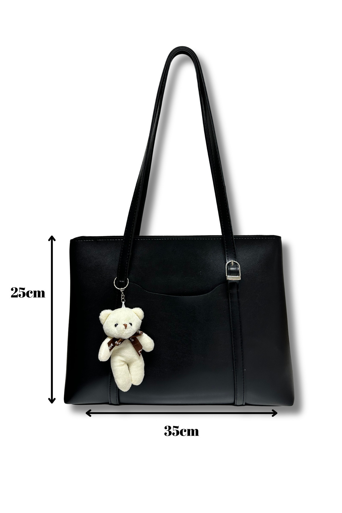 Kadın Fermuarlı Ayı Aksesuarlı Siyah Omuz Ve Kol Çantası Kadın Fermuarlı Ayı Aksesuarlı Siyah Omuz Ve Kol Çantası AYI Standart