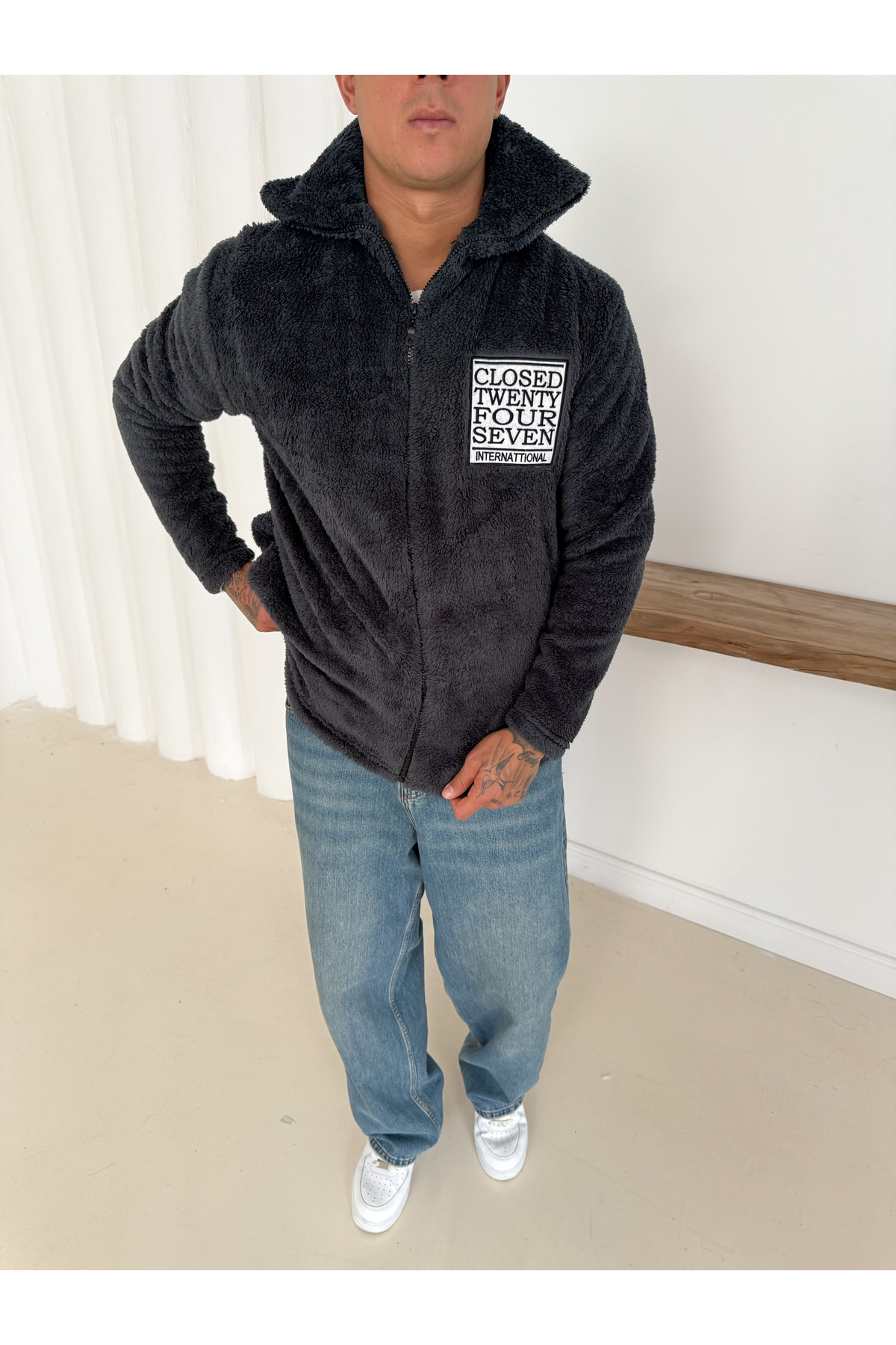 Unisex Oversize Closed Nakışlı Peluş Kolej Ceket Unisex Oversize Closed Nakışlı Peluş Kolej Ceket otkkljcmp 2XL