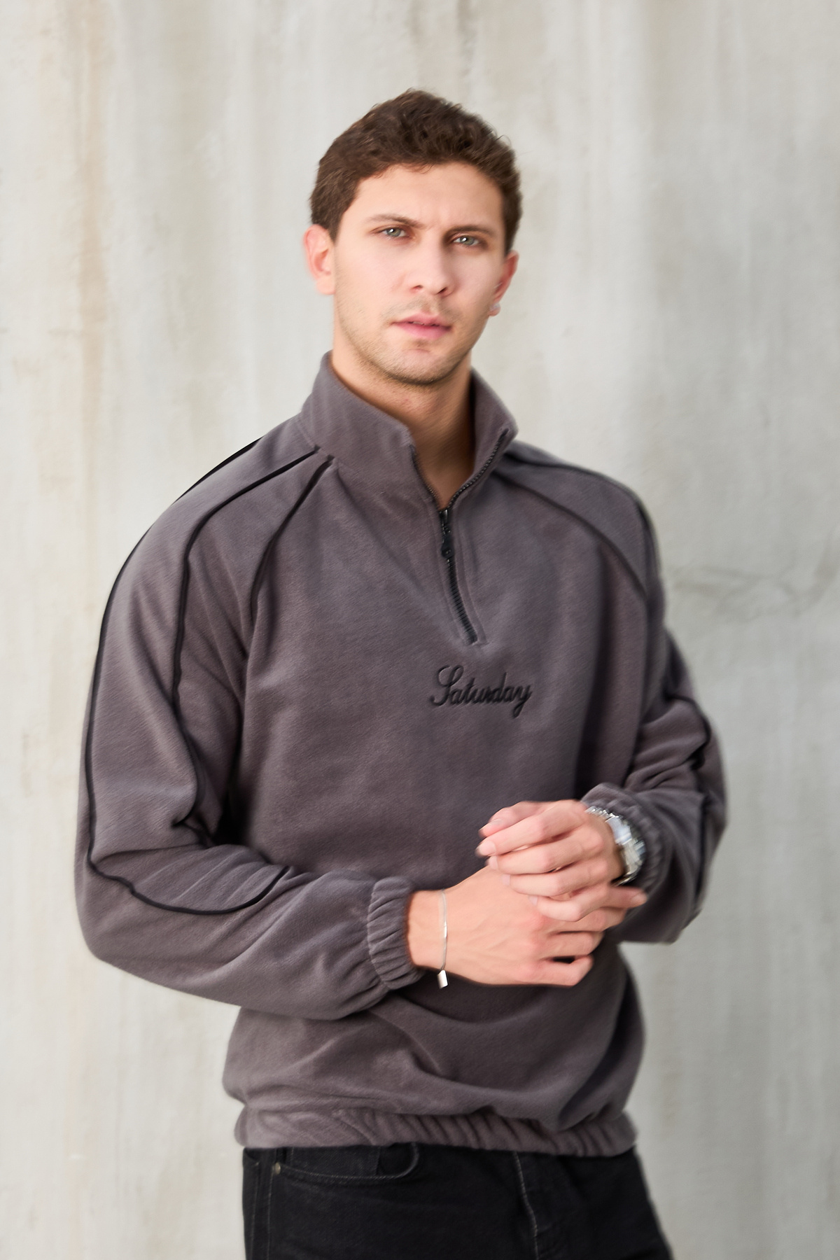 Erkek Yarım Fermuarlı Nakışlı Polar Sweatshirt Erkek Yarım Fermuarlı Nakışlı Polar Sweatshirt 252011 XL