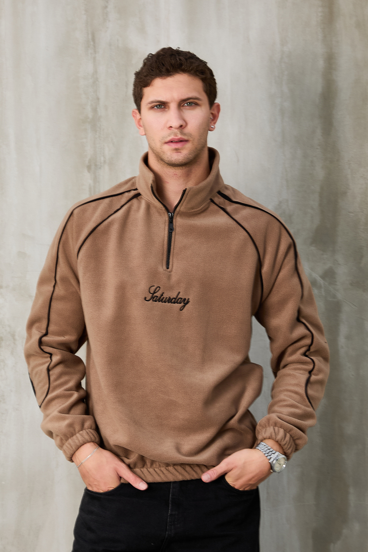 Erkek Yarım Fermuarlı Nakışlı Polar Sweatshirt Erkek Yarım Fermuarlı Nakışlı Polar Sweatshirt 252011 XL